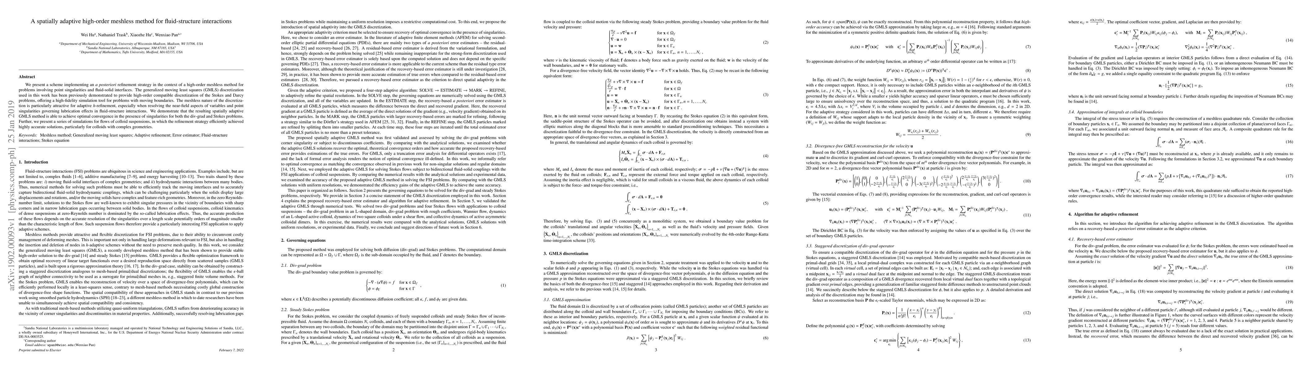 This paper introduces a spatially adaptive high-order meshless method using generalized moving least squares for fluid-structure interaction problems, demonstrating optimal convergence in the presence of singularities and achieving high-fidelity simulations for flows of colloid suspensions with complex geometries. The adaptive refinement strategy efficiently resolves near-field aspects and point singularities.