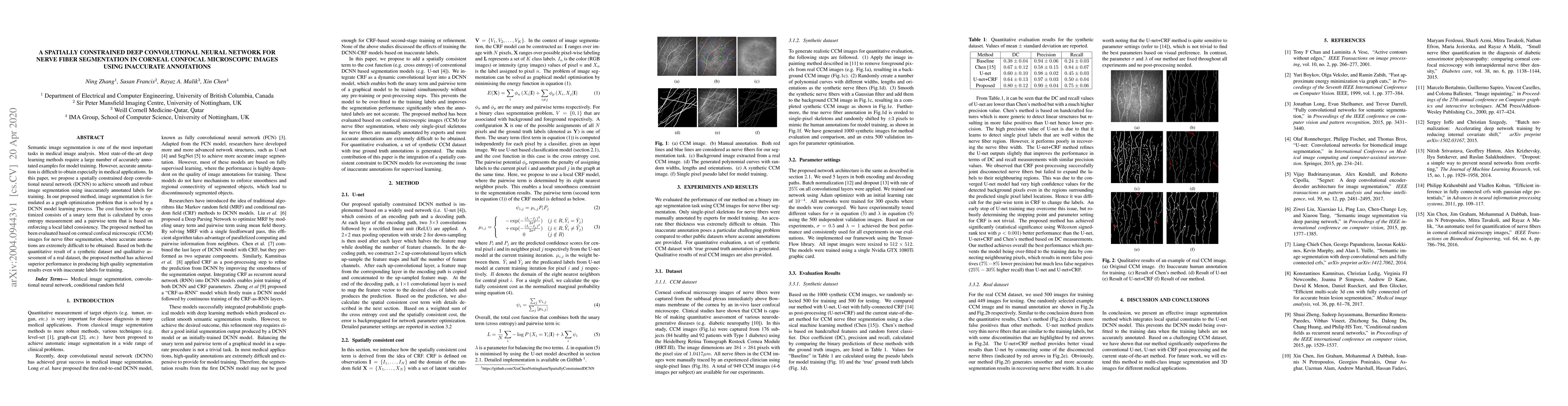 Semantic image segmentation is one of the most important tasks in medical image analysis. Most state-of-the-art deep learning methods require a large number of accurately annotated examples for model training. However, accurate annotation is difficult to obtain especially in medical applications. In this paper, we propose a spatially constrained deep convolutional neural network (DCNN) to achieve smooth and robust image segmentation using inaccurately annotated labels for training. In our proposed method, image segmentation is formulated as a graph optimization problem that is solved by a DCNN model learning process. The cost function to be optimized consists of a unary term that is calculated by cross entropy measurement and a pairwise term that is based on enforcing a local label consistency. The proposed method has been evaluated based on corneal confocal microscopic (CCM) images for nerve fiber segmentation, where accurate annotations are extremely difficult to be obtained. Based on both the quantitative result of a synthetic dataset and qualitative assessment of a real dataset, the proposed method has achieved superior performance in producing high quality segmentation results even with inaccurate labels for training.