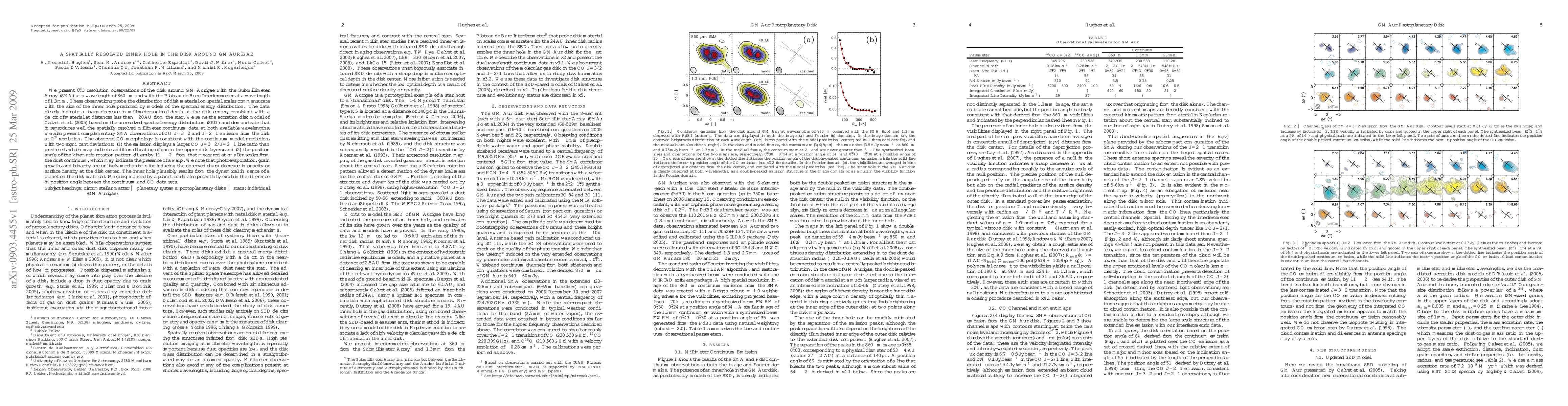 This study reveals a spatially resolved inner hole in the GM Aurigae disk using high-resolution observations, suggesting a deficit of material within ~20 AU from the star. The findings support a planet's dynamical influence on the disk, potentially causing warping and deviations in the CO emission pattern.