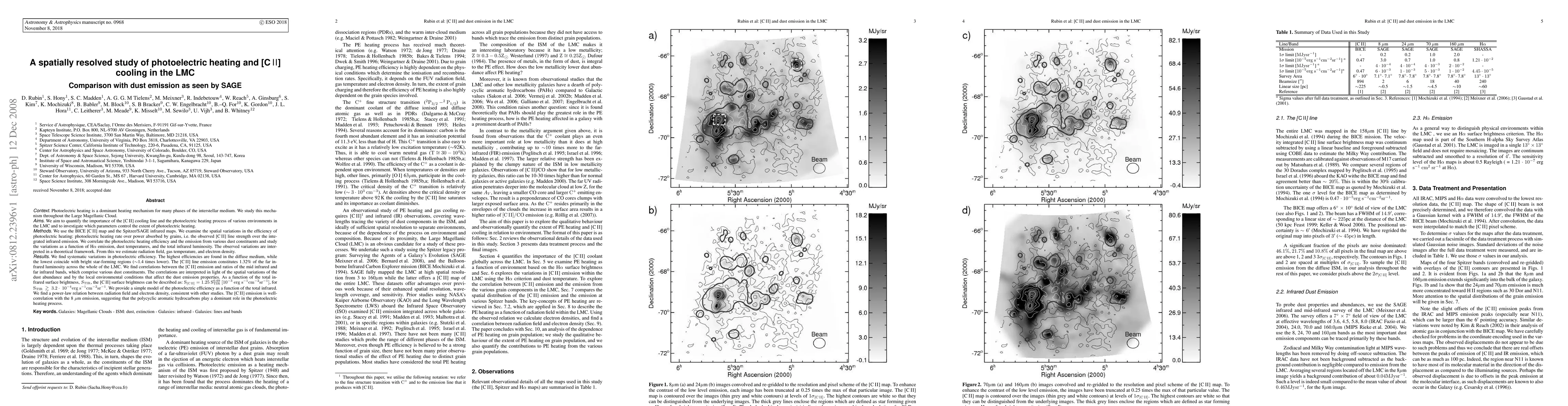 This study investigates photoelectric heating and [CII] cooling in the Large Magellanic Cloud (LMC), finding that the highest photoelectric heating efficiency occurs in the diffuse medium, while star-forming regions show lower efficiency. The [CII] line emission correlates with dust emission properties and is influenced by local environmental conditions.