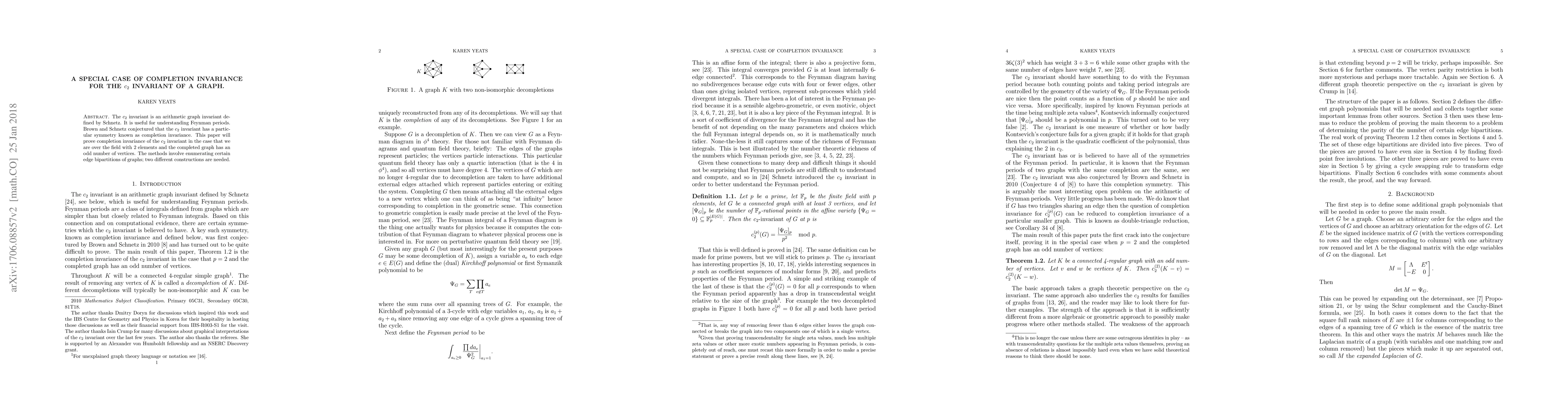 The $c_2$ invariant is an arithmetic graph invariant defined by Schnetz. It is useful for understanding Feynman periods. Brown and Schnetz conjectured that the $c_2$ invariant has a particular symmetry known as completion invariance. This paper will prove completion invariance of the $c_2$ invariant in the case that $p=2$ and the completed graph has an odd number of vertices. The methods involve enumerating certain edge bipartitions of graphs; two different constructions are needed.