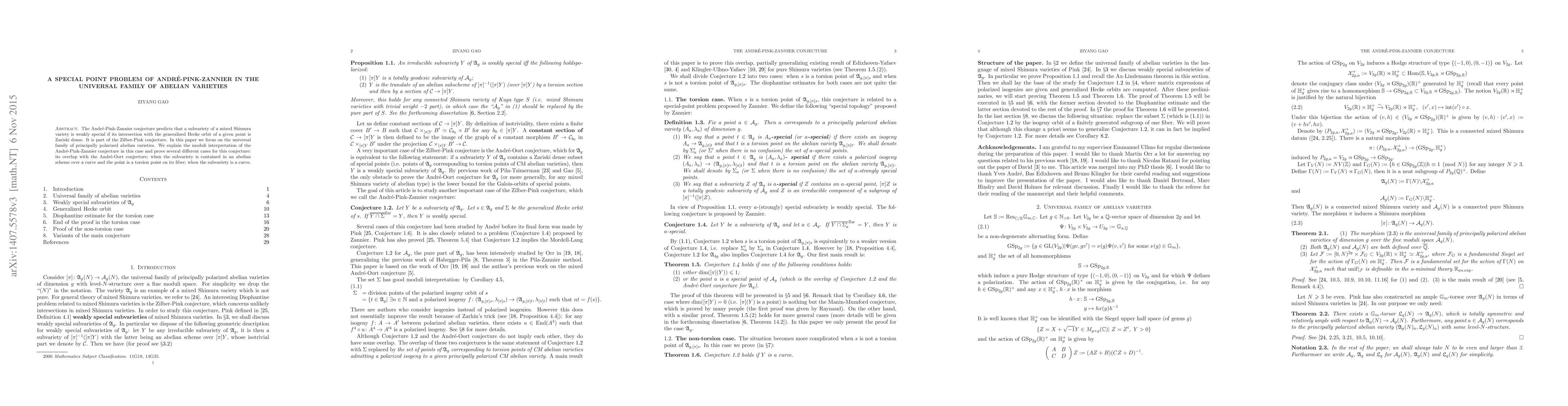 The Andr\'e-Pink-Zannier conjecture concerns the intersection of subvarieties and the generalized Hecke orbit of a given point in mixed Shimura varieties. It is part of the Zilber-Pink conjecture. In this paper we focus on the universal family of principally polarized abelian varieties. We explain the moduli interpretation of the conjecture in this case and prove several different cases for this conjecture: its overlap with the Andr\'e-Oort conjecture; when the subvariety is contained in an abelian scheme over a curve and the point is a torsion point on its fiber; when the subvariety is a curve.
