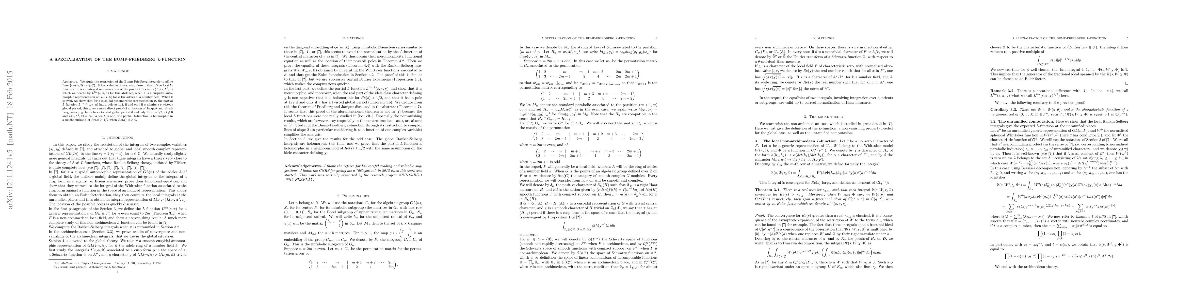 We study the restriction of the Bump-Friedberg integrals to affine lines $\{(s+\alpha,2s),s\in\C\}$. It has a simple theory, very close to that of the Asai $L$-function. It is an integral representation of the product $L(s+\alpha,\pi)L(2s,\Lambda^2,\pi)$ which we denote by $L^{lin}(s,\pi,\alpha)$ for this abstract, when $\pi$ is a cuspidal automorphic representation of $GL(k,A)$ for $A$ the adeles of a number field. When $k$ is even, we show that for a cuspidal automorphic representation $\pi$, the partial $L$-function $L^{lin,S}(s,\pi,\alpha)$ has a pole at 1/2, if and only if $\pi$ admits a (twisted) global period, this gives a more direct proof of a theorem of Jacquet and Friedberg, asserting that $\pi$ has a twisted global period if and only if $L(\alpha+1/2,\pi)\neq 0$ and $L(1,\Lambda^2,\pi)=\infty$. When $k$ is odd, the partial $L$-function is holmorphic in a neighbourhood of $Re(s)\geq 1/2$ when $Re(\alpha)$ is $\geq 0$.