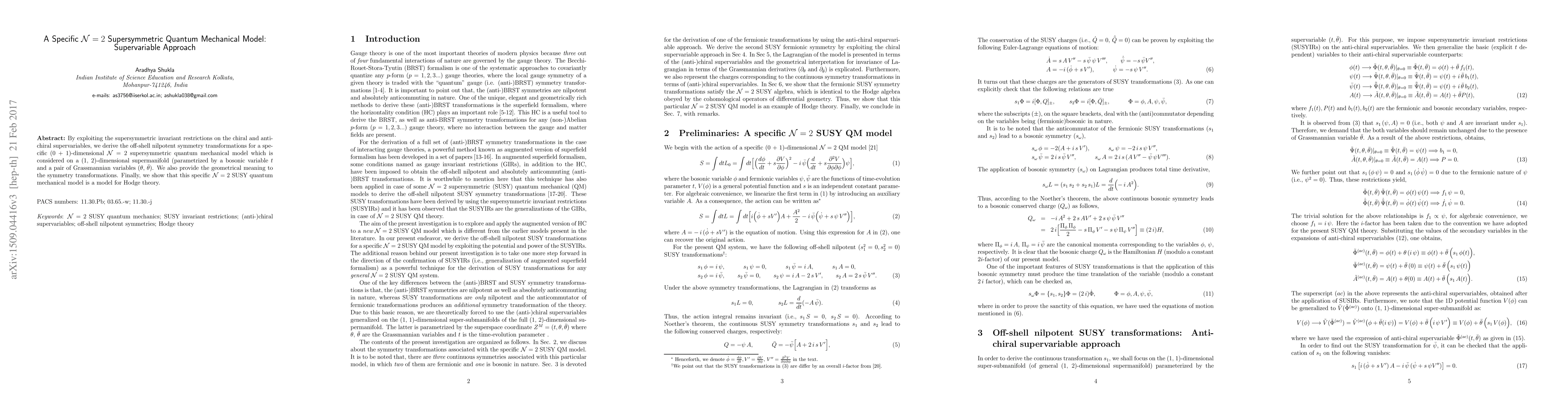 This paper derives off-shell nilpotent symmetry transformations for a specific (0 + 1)-dimensional N = 2 supersymmetric quantum mechanical model defined on a (1, 2)-dimensional supermanifold, and interprets these transformations geometrically, demonstrating its relevance to Hodge theory.
