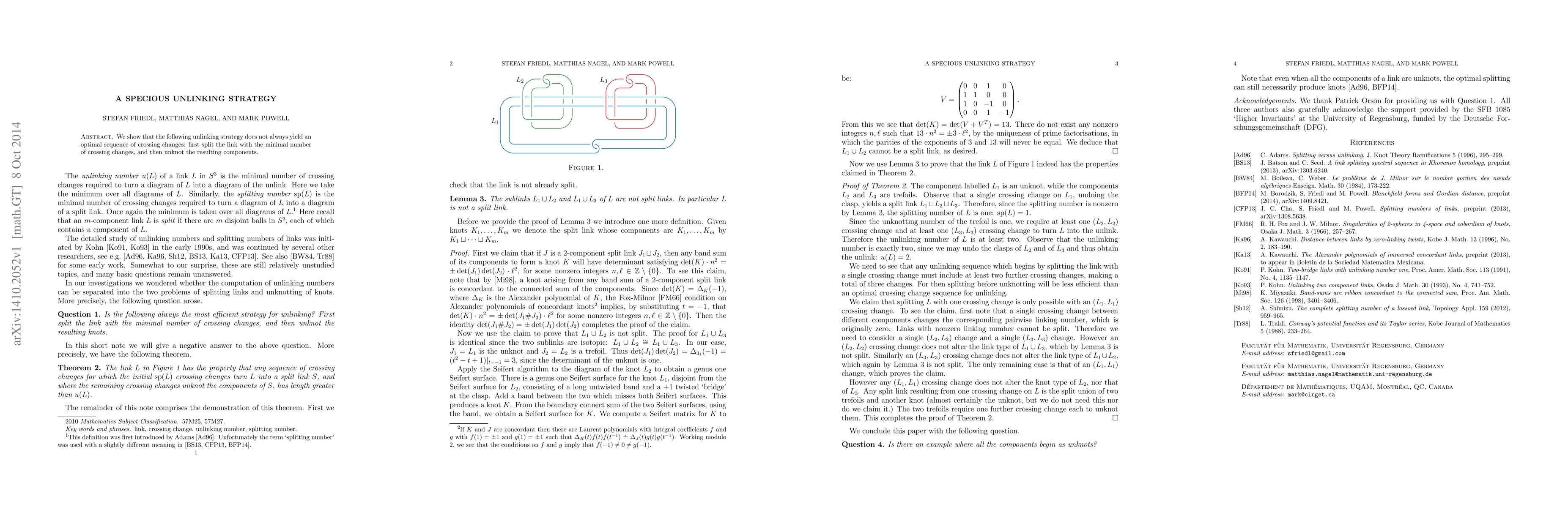 The paper presents a theorem demonstrating that for a particular link, the proposed unlinking strategy does not always yield an optimal sequence of crossing changes, thereby challenging existing assumptions in link theory.