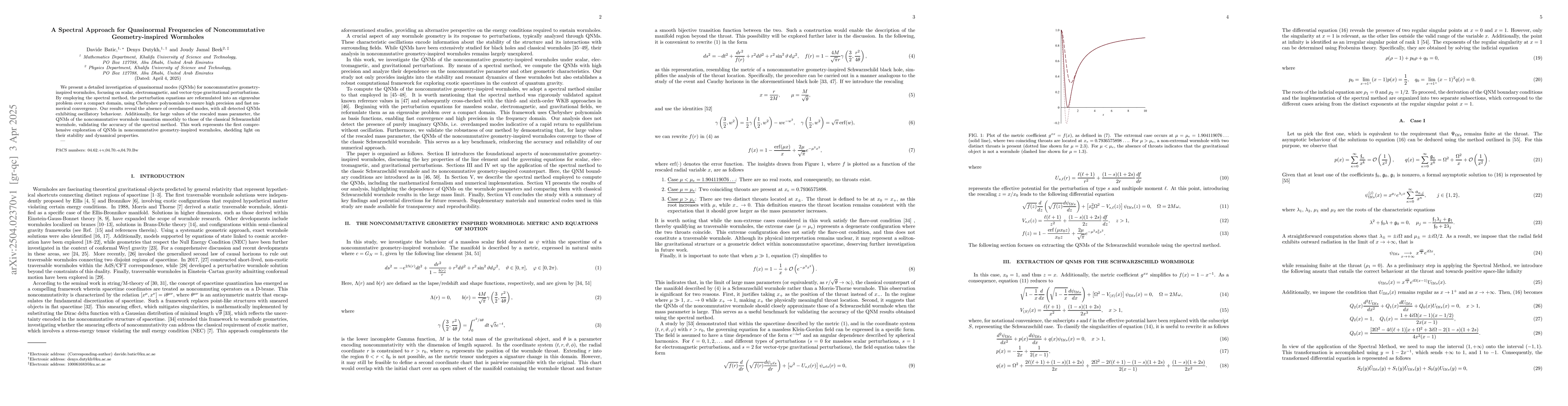 The paper introduces a novel spectral approach using Chebyshev polynomials to accurately compute QNMs for noncommutative geometry-inspired wormholes, validating the method through comparison with classical Schwarzschild wormhole results.