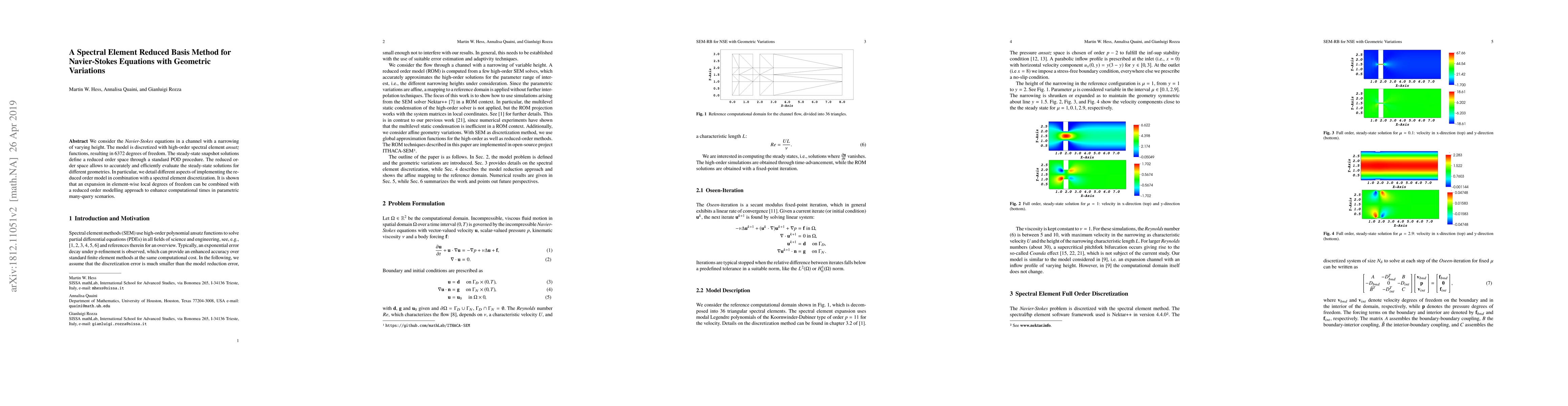 This paper proposes a spectral element reduced basis method for solving the Navier-Stokes equations in channels with varying geometry. It employs high-order spectral elements and a proper orthogonal decomposition to create a reduced order model, significantly enhancing computational efficiency for multiple geometry evaluations.