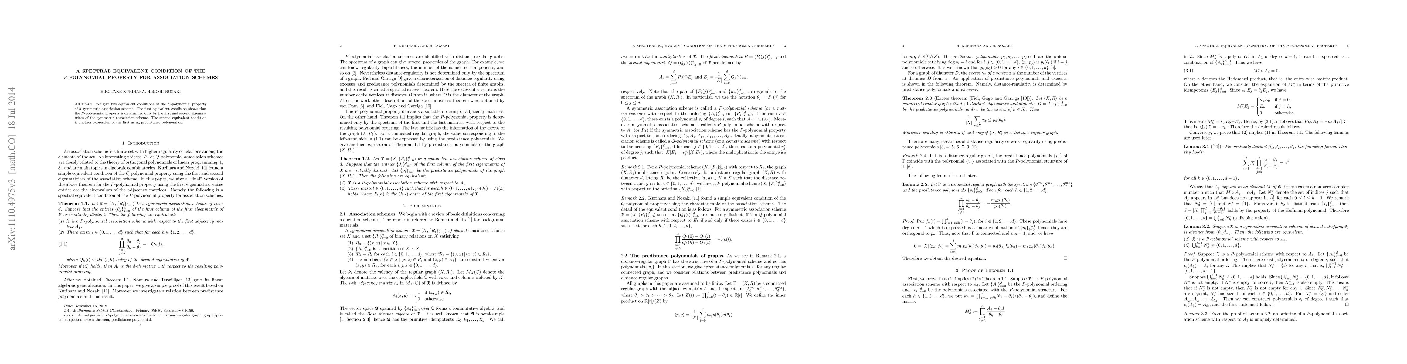 We give an equivalent condition of the $P$-polynomial property of symmetric association schemes.