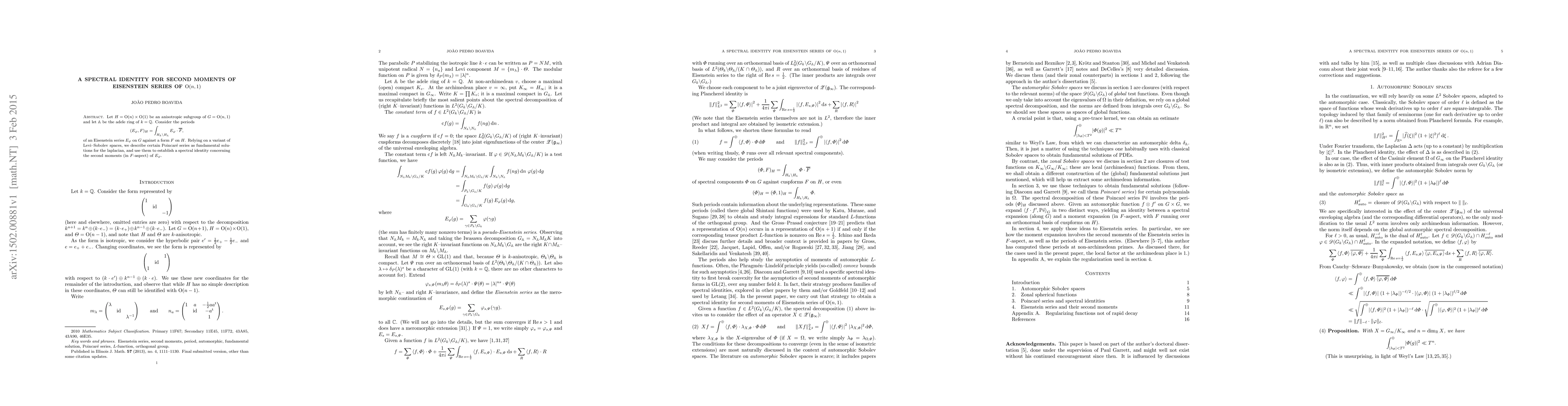 This paper establishes a spectral identity for the second moments of Eisenstein series associated with anisotropic subgroups of O(n, 1), utilizing Poincaré series derived from a variant of Levi-Sobolev spaces as fundamental solutions for the Laplacian.