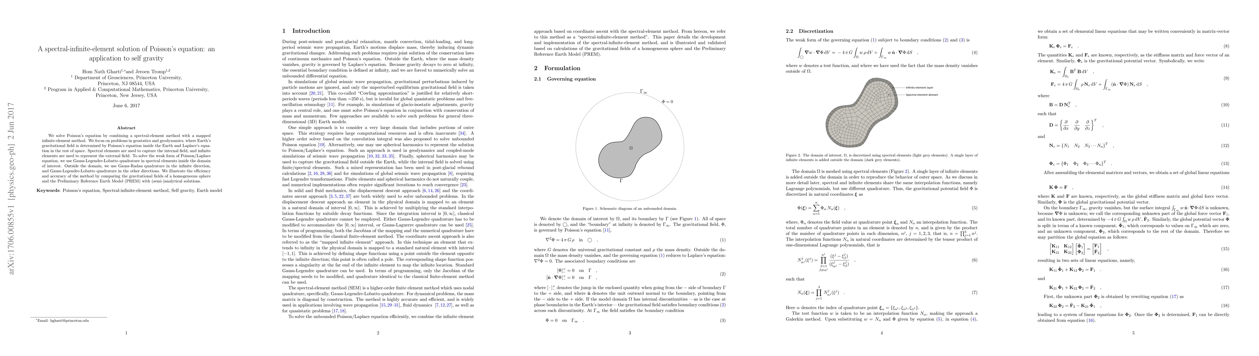 This paper combines spectral-element and mapped infinite-element methods to solve Poisson's equation for geostatic and geodynamic applications, focusing on Earth's gravitational field. The method uses Gauss quadratures to efficiently capture internal and external gravitational fields, demonstrating accuracy through comparisons with analytical solutions.