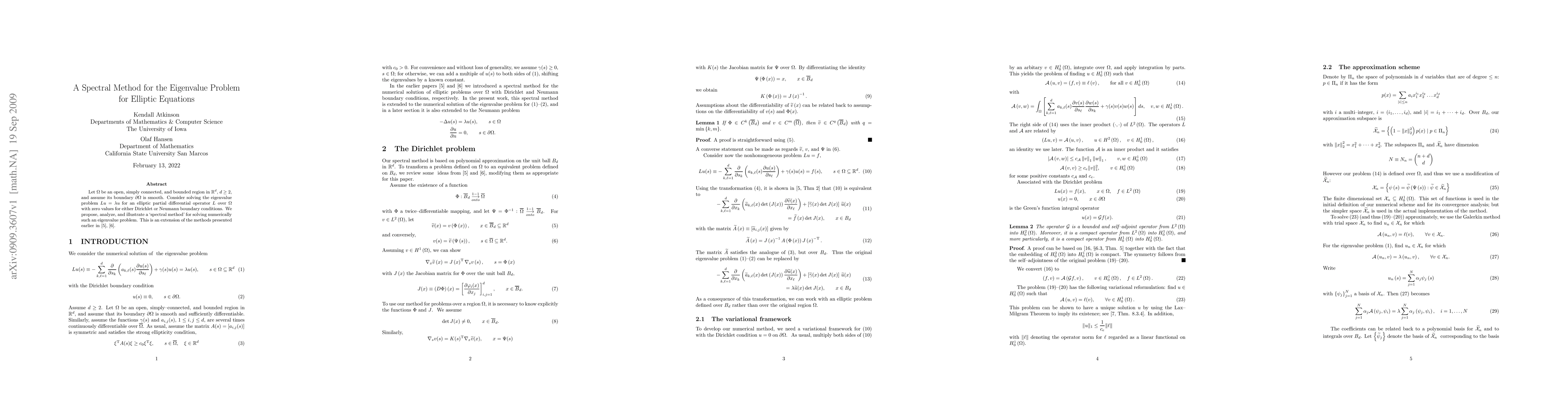 Let $\Omega$ be an open, simply connected, and bounded region in $\mathbb{R}^{d}$, $d\geq2$, and assume its boundary $\partial\Omega$ is smooth. Consider solving the eigenvalue problem $Lu=\lambda u$ for an elliptic partial differential operator $L$ over $\Omega$ with zero values for either Dirichlet or Neumann boundary conditions. We propose, analyze, and illustrate a 'spectral method' for solving numerically such an eigenvalue problem. This is an extension of the methods presented earlier in [5],[6].