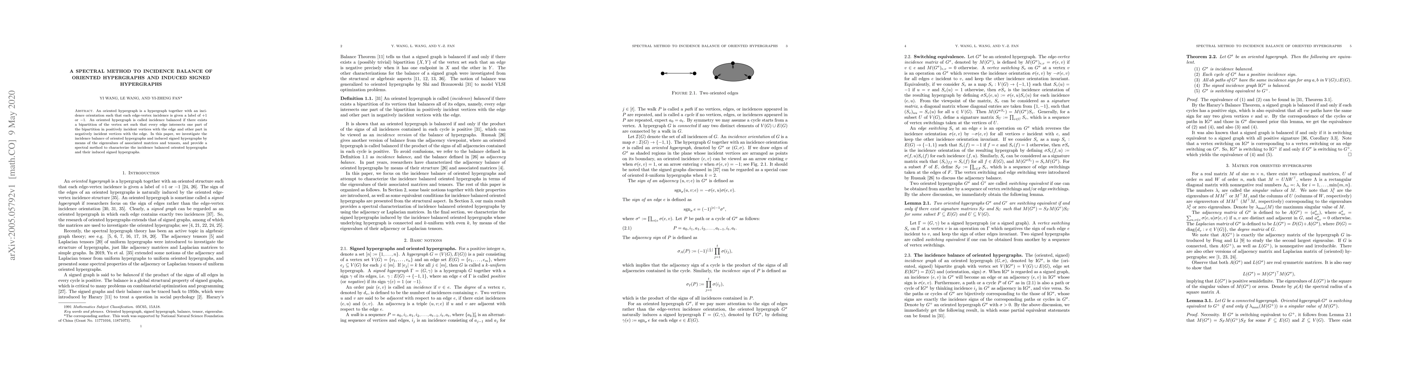 A new method uses eigenvalues to determine if an oriented hypergraph is balance, providing a way to characterize incidence balanced structures in hypergraphs.