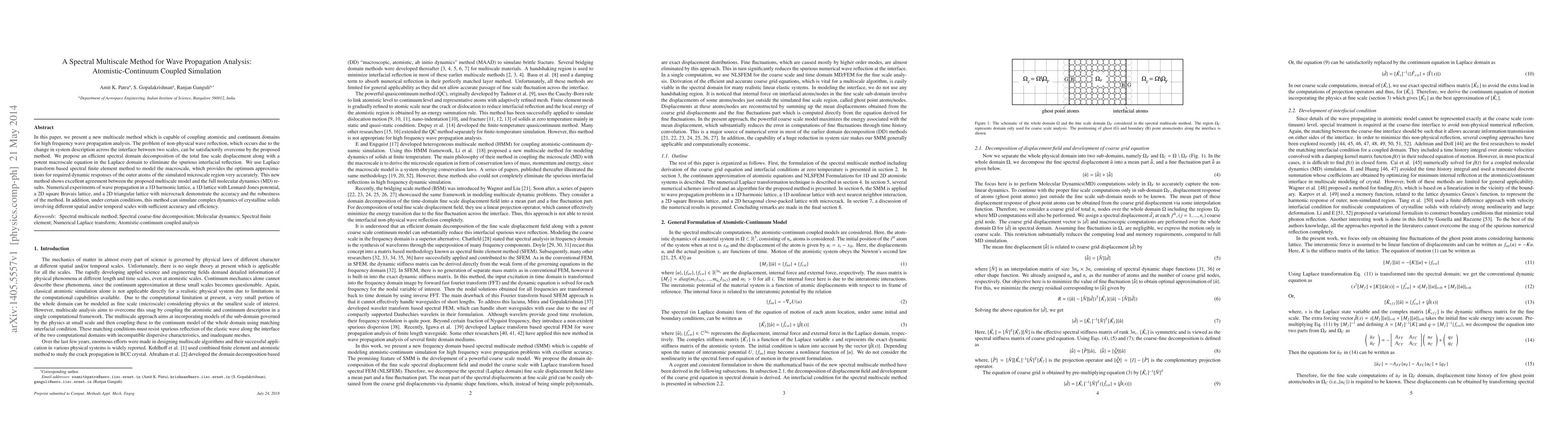 This paper introduces a spectral multiscale method for wave propagation analysis that effectively couples atomistic and continuum domains, addressing non-physical wave reflections at the interface. It employs a spectral domain decomposition and Laplace transform-based spectral finite element method to achieve accurate dynamic responses and demonstrates robustness through various numerical experiments.