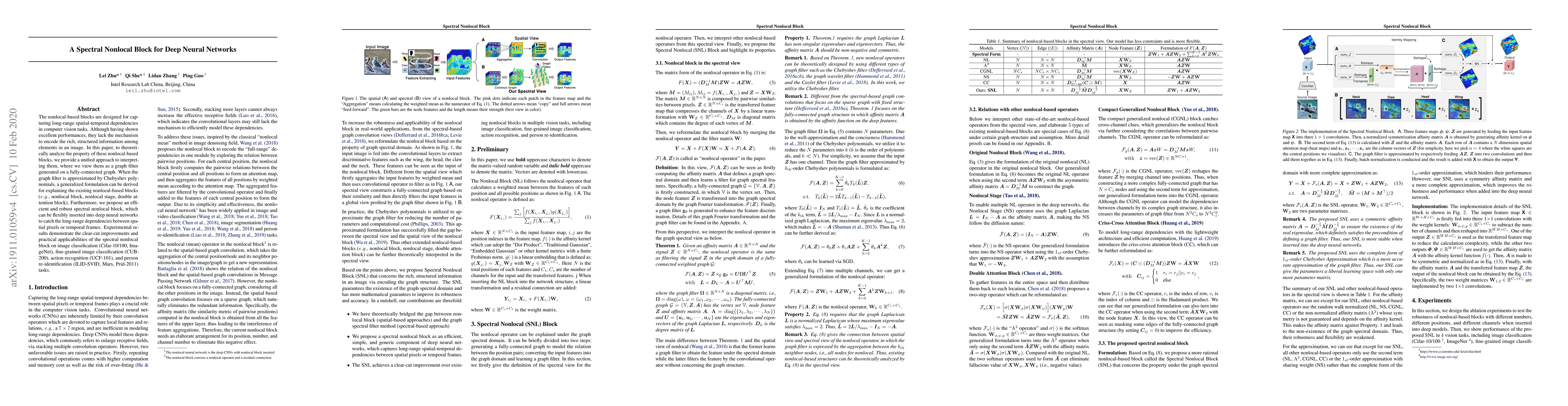 The nonlocal-based blocks are designed for capturing long-range spatial-temporal dependencies in computer vision tasks. Although having shown excellent performances, they lack the mechanism to encode the rich, structured information among elements in an image. In this paper, to theoretically analyze the property of these nonlocal-based blocks, we provide a unified approach to interpreting them, where we view them as a graph filter generated on a fully-connected graph. When the graph filter is approximated by Chebyshev polynomials, a generalized formulation can be derived for explaining the existing nonlocal-based blocks ($\mathit{e.g.,}$ nonlocal block, nonlocal stage, double attention block). Furthermore, we propose an efficient and robust spectral nonlocal block, which can be flexibly inserted into deep neural networks to catch the long-range dependencies between spatial pixels or temporal frames. Experimental results demonstrate the clear-cut improvements and practical applicabilities of the spectral nonlocal block on image classification (Cifar-10/100, ImageNet), fine-grained image classification (CUB-200), action recognition (UCF-101), and person re-identification (ILID-SVID, Mars, Prid-2011) tasks.