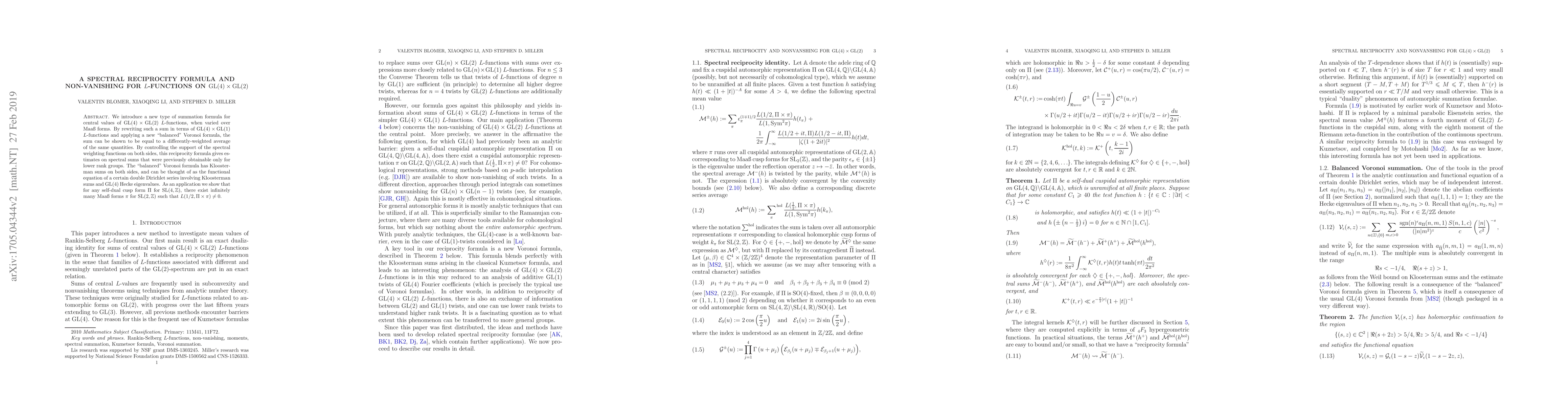 This paper develops a reciprocity formula for spectral sums of L-functions on GL(4)xGL(2) and proves non-vanishing for L(1/2, Pi x pi) for self-dual cusp forms, using a balanced Voronoi summation formula involving Kloosterman sums.