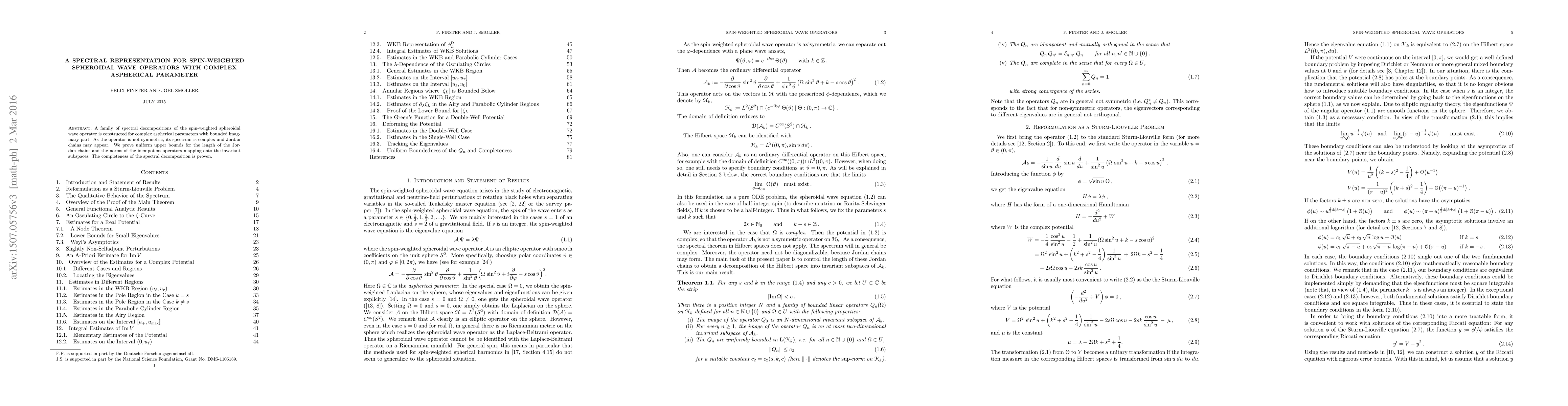 A family of spectral decompositions of the spin-weighted spheroidal wave operator is constructed for complex aspherical parameters with bounded imaginary part. As the operator is not symmetric, its spectrum is complex and Jordan chains may appear. We prove uniform upper bounds for the length of the Jordan chains and the norms of the idempotent operators mapping onto the invariant subspaces. The completeness of the spectral decomposition is proven.