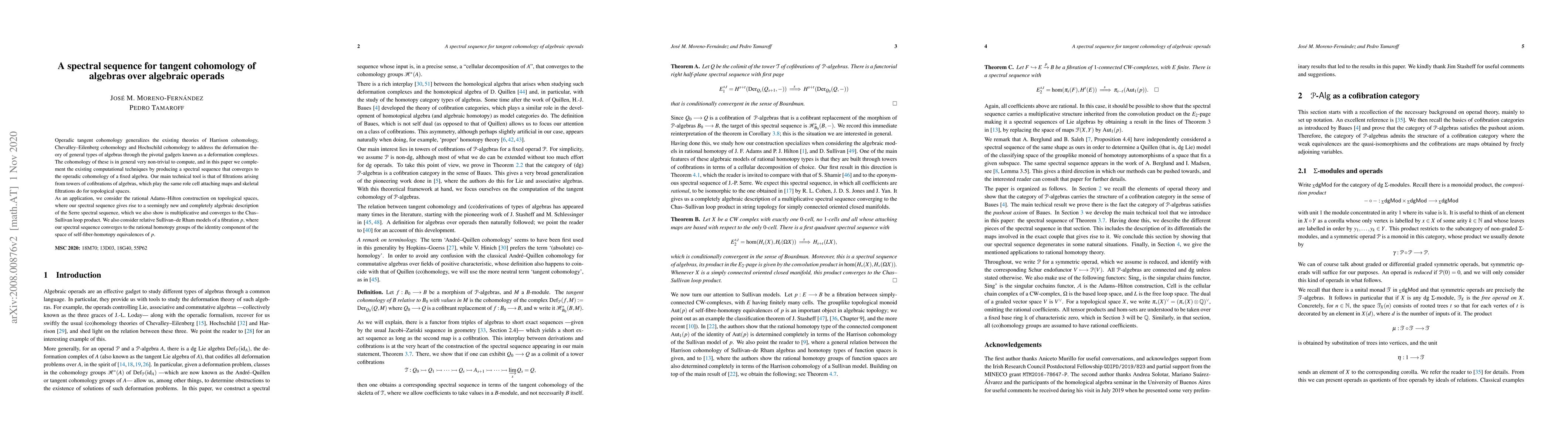 This paper introduces a spectral sequence for computing operadic tangent cohomology, which generalizes several existing cohomology theories. The spectral sequence leverages filtrations from cofibration towers to simplify computations and provides a new algebraic description of the Serre spectral sequence in the context of the Adams--Hilton construction.