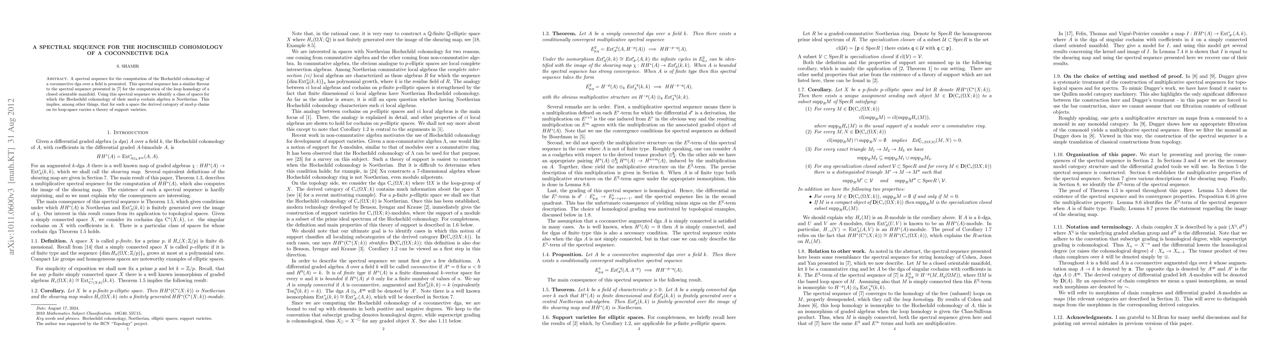 A spectral sequence for the computation of the Hochschild cohomology of a coconnective dga over a field is presented. This spectral sequence has a similar flavour to the spectral sequence constructed by Cohen, Jones and Yan for the computation of the loop homology of a closed orientable manifold. Using this spectral sequence we identify a class of spaces for which the Hochschild cohomology of their mod-p cochain algebra is Noetherian. This implies, among other things, that for such a space the derived category of mod-p chains on its loop-space carries a theory of support varieties.