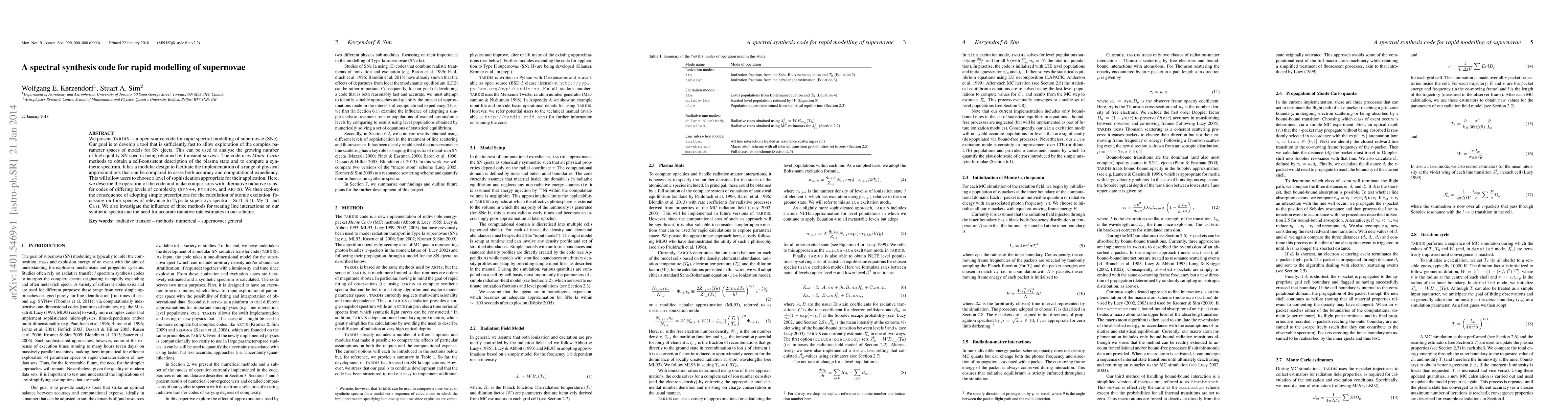 We present TARDIS - an open-source code for rapid spectral modelling of supernovae (SNe). Our goal is to develop a tool that is sufficiently fast to allow exploration of the complex parameter spaces of models for SN ejecta. This can be used to analyse the growing number of high-quality SN spectra being obtained by transient surveys. The code uses Monte Carlo methods to obtain a self-consistent description of the plasma state and to compute a synthetic spectrum. It has a modular design to facilitate the implementation of a range of physical approximations that can be compared to asses both accuracy and computational expediency. This will allow users to choose a level of sophistication appropriate for their application. Here, we describe the operation of the code and make comparisons with alternative radiative transfer codes of differing levels of complexity (SYN++, PYTHON, and ARTIS). We then explore the consequence of adopting simple prescriptions for the calculation of atomic excitation, focussing on four species of relevance to Type Ia supernova spectra - Si II, S II, Mg II, and Ca II. We also investigate the influence of three methods for treating line interactions on our synthetic spectra and the need for accurate radiative rate estimates in our scheme.