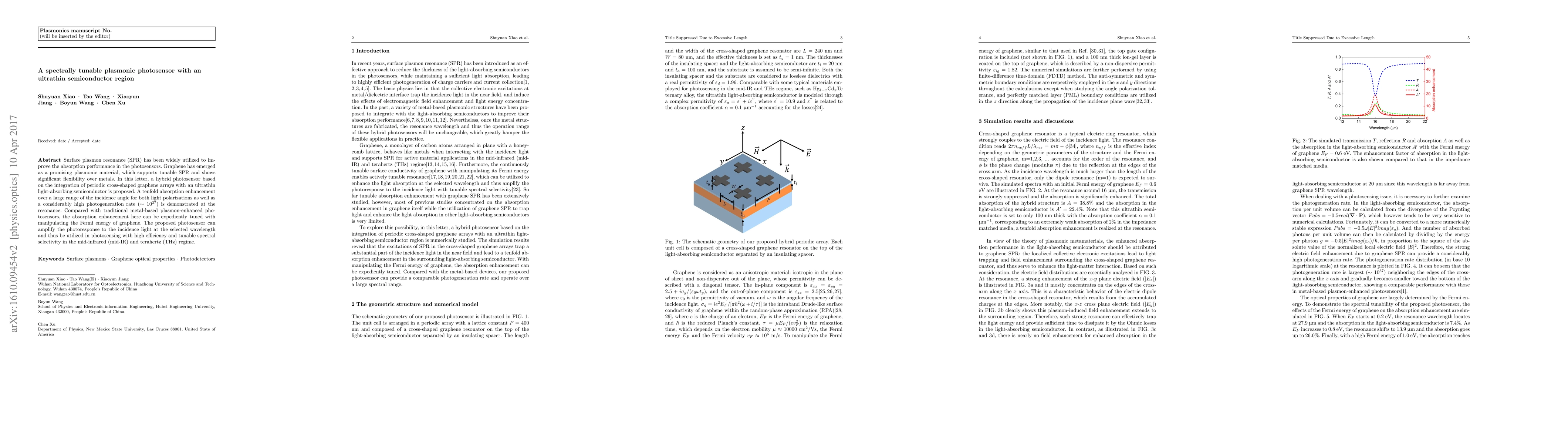 This paper proposes a hybrid photosensor integrating periodic cross-shaped graphene arrays with an ultrathin semiconductor, achieving tenfold absorption enhancement and high photogeneration rate. The tunable Fermi energy of graphene allows for flexible tuning of absorption enhancement, offering high efficiency and tunable spectral selectivity in mid-infrared and terahertz regimes.