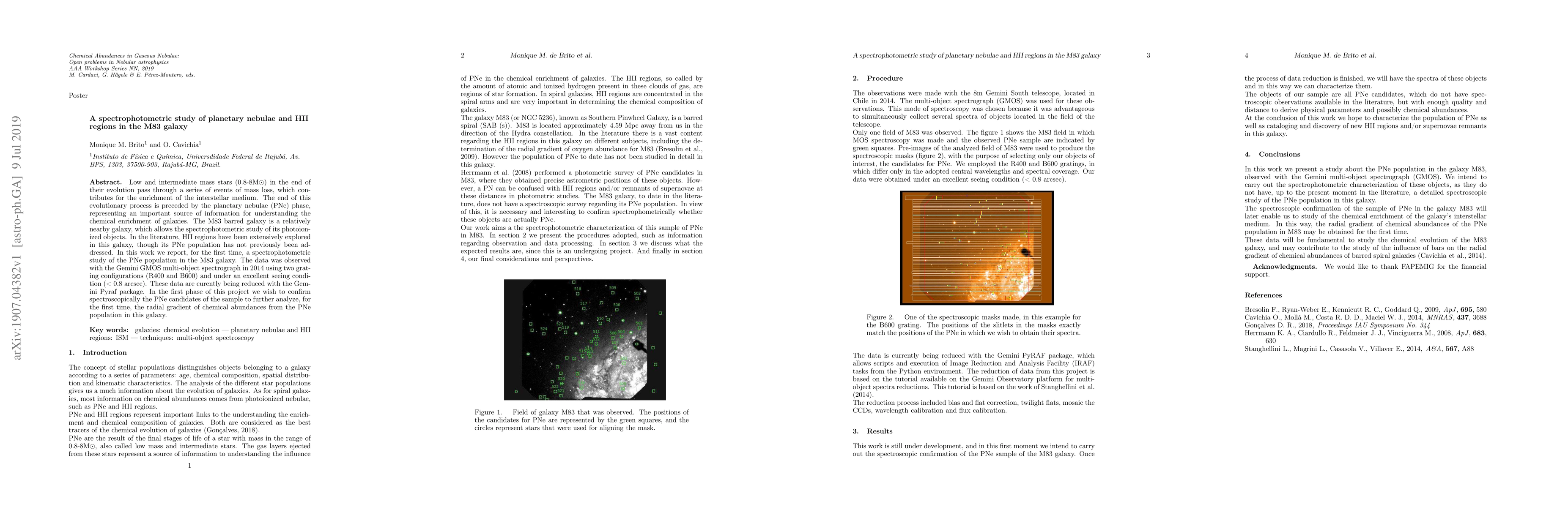 This research presents the first spectrophotometric study of planetary nebulae (PNe) in the M83 galaxy, utilizing data from the Gemini GMOS spectrograph. The study aims to spectroscopically confirm PNe candidates and analyze the radial gradient of chemical abundances, contributing to our understanding of the chemical enrichment of galaxies.