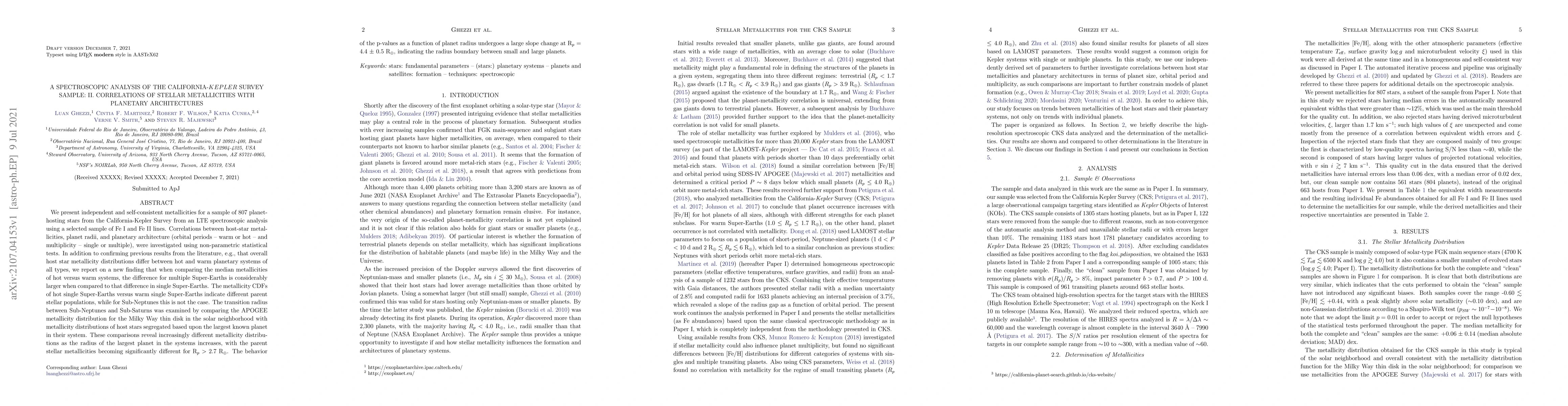 This paper investigates the metallicities of 807 planet-hosting stars from the California-Kepler Survey, finding significant differences in median metallicities between hot and warm planetary systems, especially for multiple Super-Earths. It also reveals a transition radius at 4.4 R$_{\oplus}$ where stellar metallicities diverge significantly for larger planets.