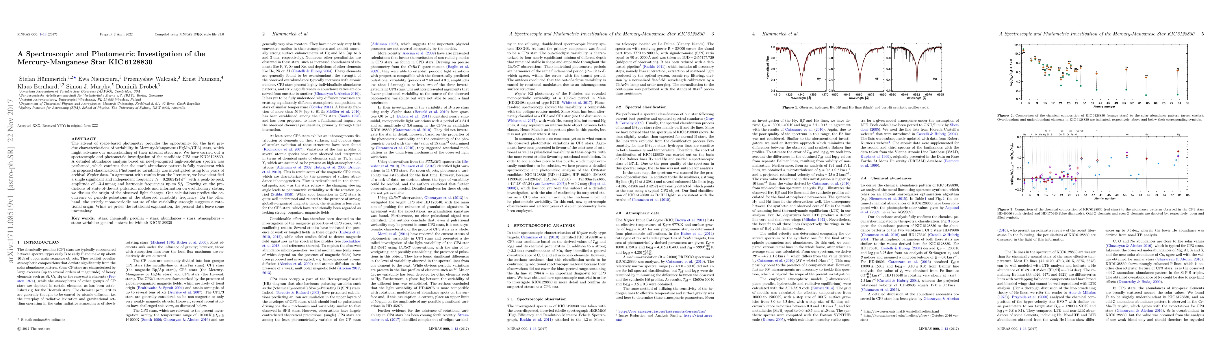 This study investigates the Mercury-Manganese star KIC 6128830, confirming its classification through spectroscopic analysis and identifying significant photometric variability using Kepler data. The observed variability is likely due to g-mode pulsations, but a rotational origin cannot be ruled out based on current data.