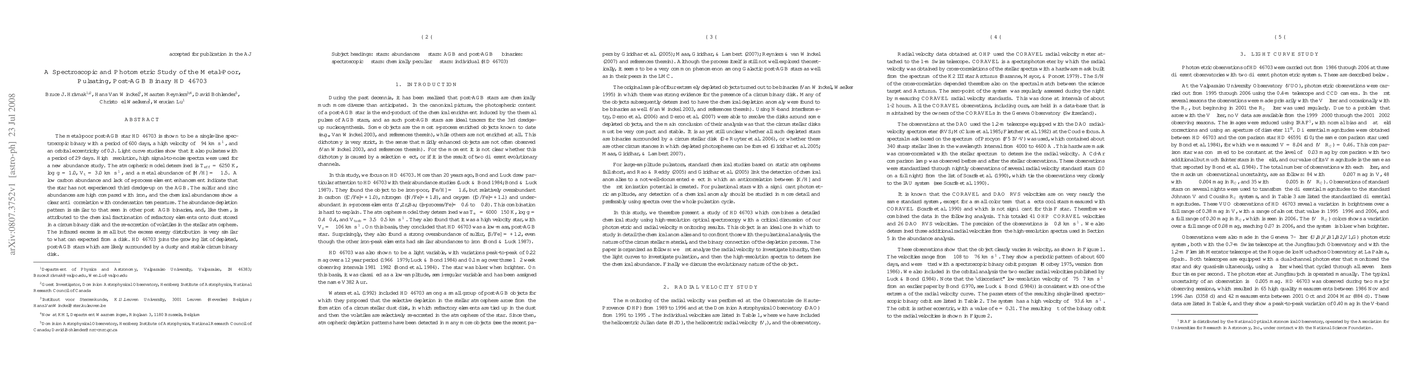 This study reveals HD 46703 as a metal-poor, pulsating post-AGB binary with a 600-day orbital period and a unique chemical composition indicating minimal third dredge-up. The star's depleted abundance pattern suggests chemical fractionation in a circumbinary disk.