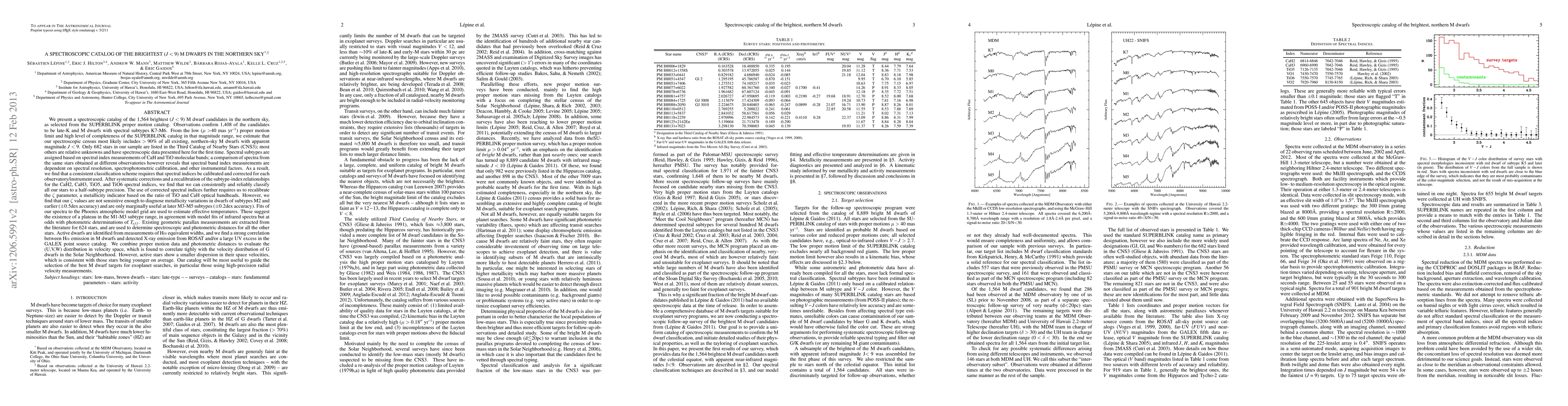 We present a spectroscopic catalog of the 1,564 brightest (J<9) M dwarf candidates in the northern sky, as selected from the SUPERBLINK proper motion catalog. Observations confirm 1,408 of the candidates to be late-K and M dwarfs with spectral subtypes K7-M6. From the low \mu>40 mas/yr proper motion limit and high level of completeness of the SUPERBLINK catalog in that magnitude range, we estimate that our spectroscopic census most likely includes >90% of all existing, northern-sky M dwarfs with apparent magnitude J<9. Only 682 stars in our sample are listed in the Third Catalog of Nearby Stars (CNS3); most others are relative unknowns and have spectroscopic data presented here for the first time. Spectral subtypes are assigned based on spectral index measurements of CaH and TiO molecular bands. A comparison of spectra from the same stars obtained at different observatories however reveals that spectral band index measurements are dependent on spectral resolution, spectrophotometric calibration, and other instrumental factors. After systematic corrections and a recalibration of the subtype-index relationships, we find that we can consistently and reliably classify all our stars to a half-subtype precision. The use of corrected spectral indices further requires us to recalibrate the \zeta parameter, from which we estimate metallicities +/-0.5dex accuracy in dwarfs of subtypes M2 and earlier, and +/-0.2dex accuracy for later (M3-M5) subtypes. Existing geometric parallax measurements are extracted from the literature for 624 stars, and are used to determine spectroscopic and photometric distances for all the other stars. Our catalog will be most useful to guide the selection of the best M dwarf targets for exoplanet searches, in particular those using high-precision radial velocity measurements.