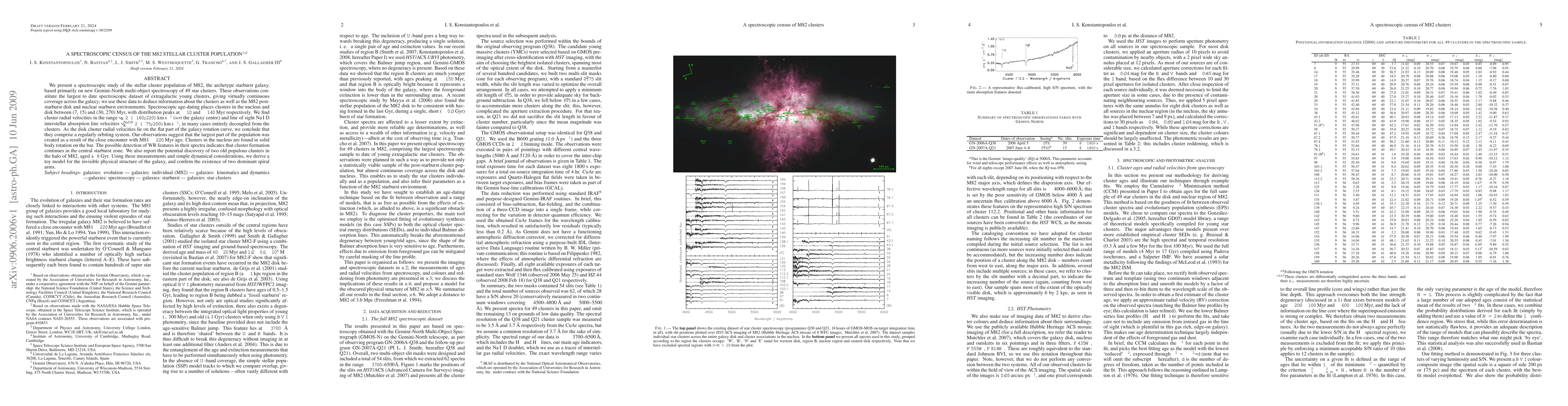 This paper presents a comprehensive spectroscopic study of M82's stellar cluster population, revealing clusters' ages, velocities, and formation history, suggesting most clusters formed post-encounter with M81, and identifying potential old clusters in the galaxy's halo. The study also supports the existence of two spiral arms and a regularly orbiting disk cluster system.