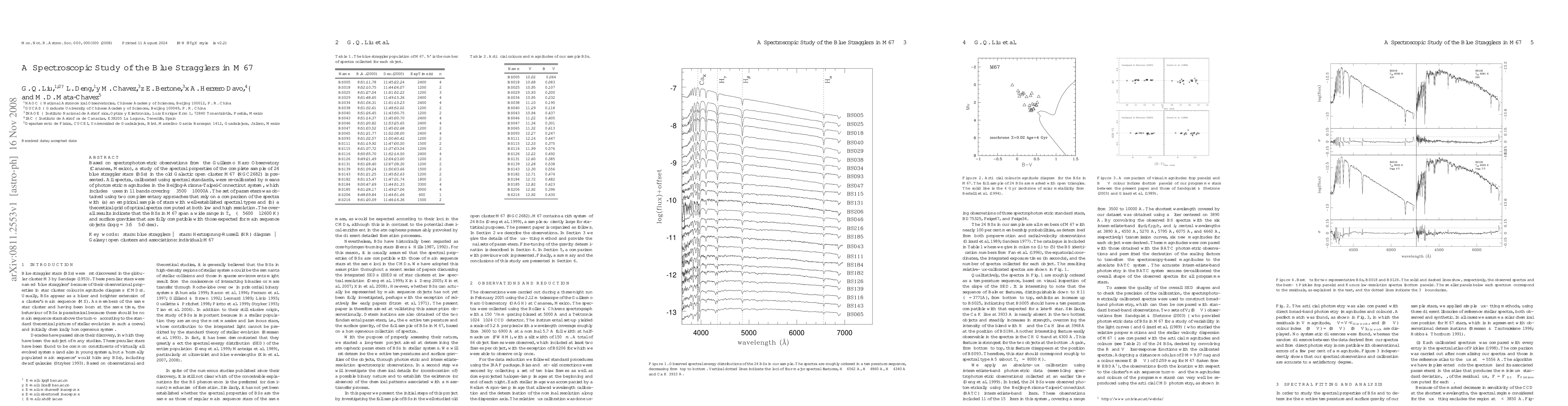 This study analyzes the spectral properties of 24 blue straggler stars in the M67 cluster using spectrophotometric data, revealing a wide range in effective temperature and surface gravities consistent with main-sequence objects. The analysis combines empirical and theoretical spectral comparisons.
