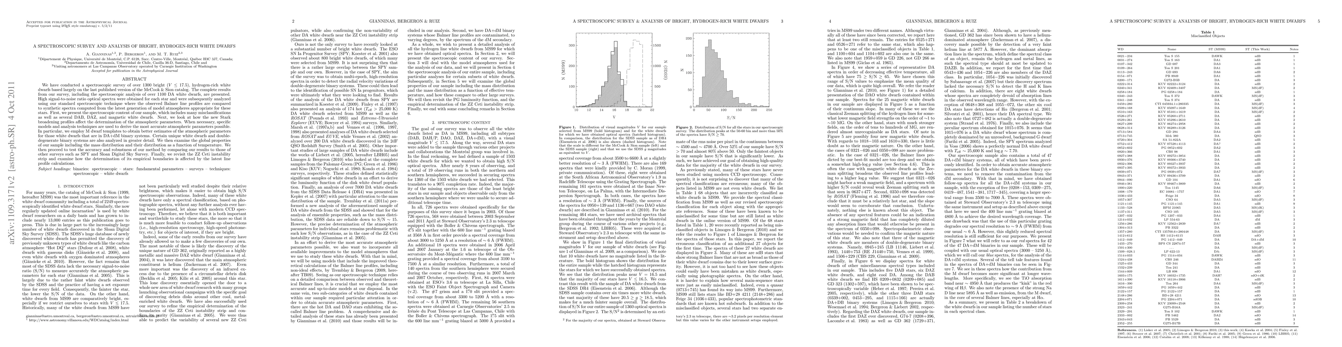 This research presents a comprehensive spectroscopic survey of over 1300 bright hydrogen-rich white dwarfs, focusing on the analysis of over 1100 DA white dwarfs. The study identifies misclassifications and examines the impact of new Stark broadening profiles on atmospheric parameter determinations, comparing results to other surveys to validate the methodology.