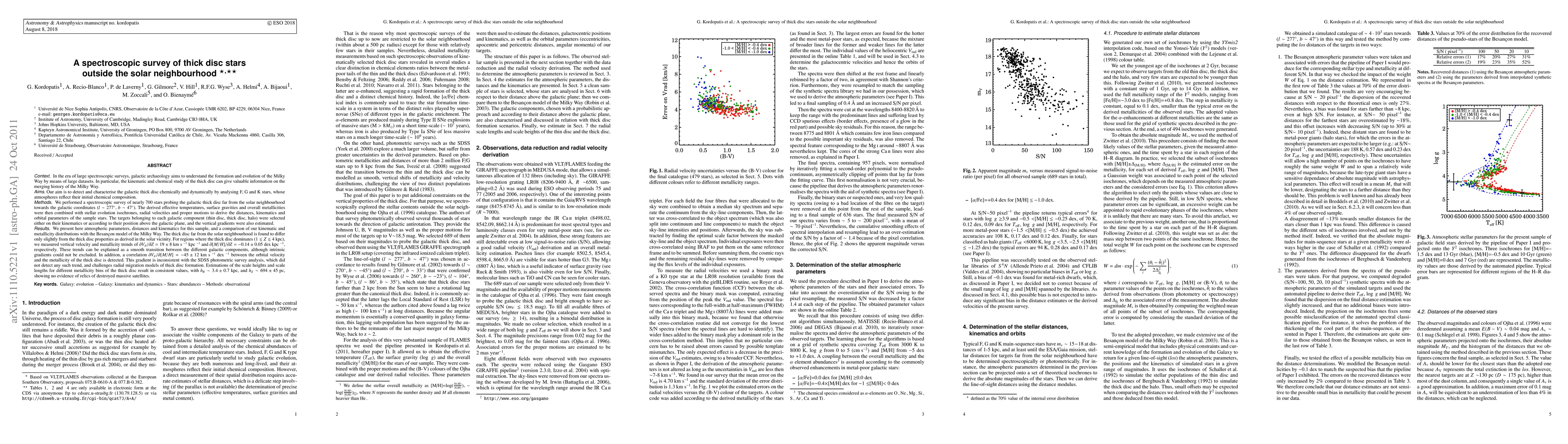 This paper reports a spectroscopic survey of nearly 700 stars in the galactic thick disc, far from the solar neighborhood, revealing slight differences in properties compared to the solar vicinity. The study finds vertical velocity and metallicity trends, challenging existing radial migration models and indicating no evidence of relics from destroyed massive satellites.