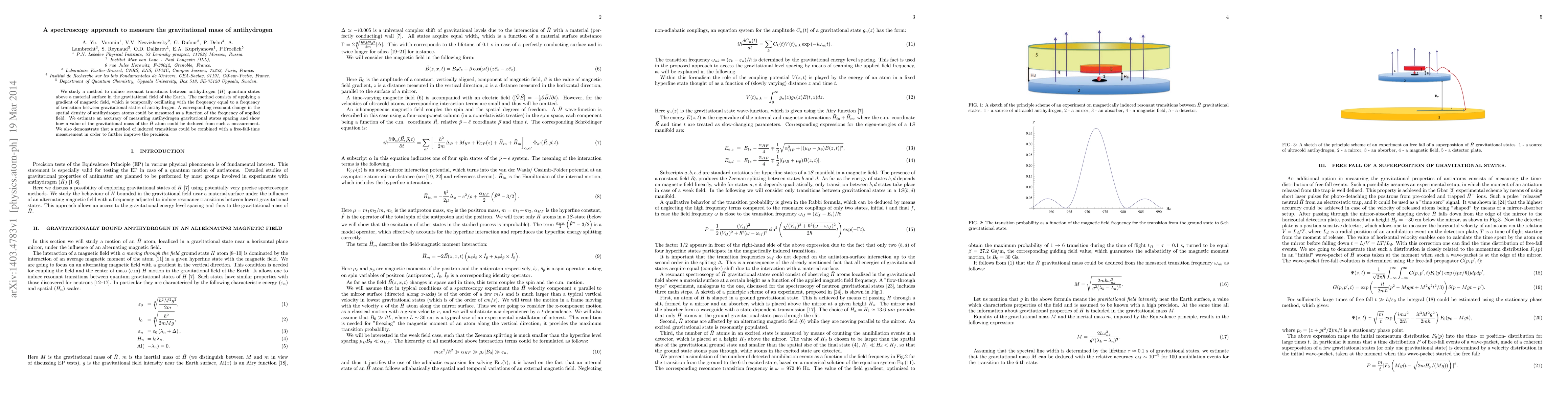 This paper proposes a spectroscopy method to measure the gravitational mass of antihydrogen by inducing resonant transitions between its quantum states using a temporally oscillating magnetic field gradient. The method aims to improve precision by combining it with free-fall-time measurements.