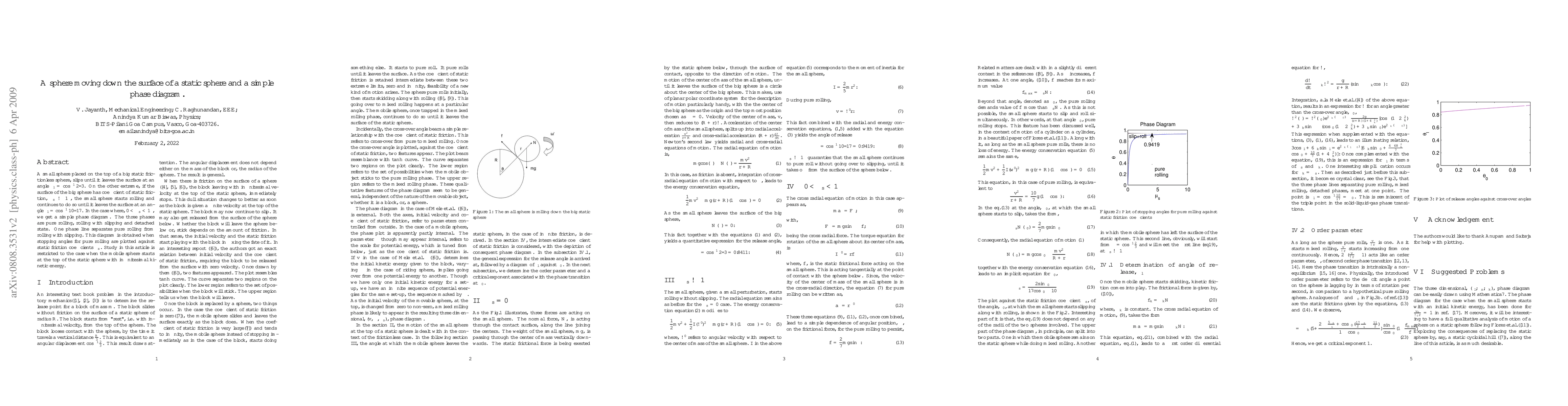 A small sphere placed on the top of a big static frictionless sphere, slips until it leaves the surface at an angle $\theta_{l}=\cos^{-1}{2/3}$. On the other extreme, if the surface of the big sphere has coefficient of static friction, $\mu_s\to\infty$, the small sphere starts rolling and continues to do so until it leaves the surface at an angle $\theta_{l} =\cos^{-1}{10/17}$. In the case where, $0\leq\mu_s<\infty$, we get a simple phase diagram. The three phases are pure rolling, rolling with slipping and detached state. One phase line separates pure rolling from rolling with slipping. This diagram is obtained when stopping angles for pure rolling are plotted against static friction coefficients $\mu_s$. Study in this article is restricted to the case when the mobile sphere starts at the top of the static sphere with infinitesimal kinetic energy.