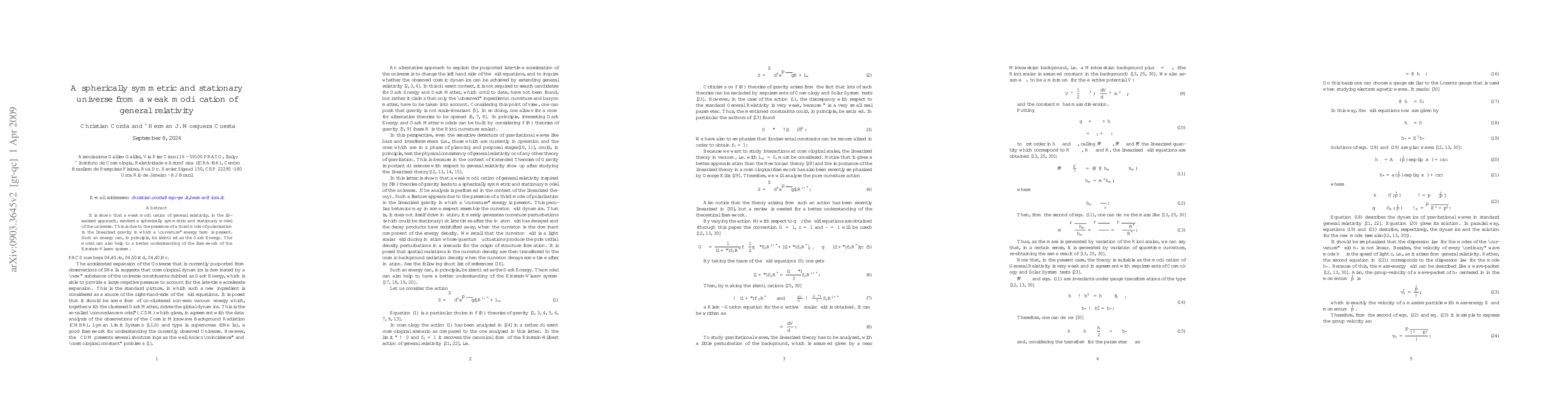 This paper demonstrates that a slight modification of general relativity, specifically in the linearized approach, can produce a spherically symmetric and stationary universe model. The model incorporates a third polarization mode with a "curvature" energy term, potentially identified as Dark Energy, and aids in understanding the Einstein-Vlasov system framework.