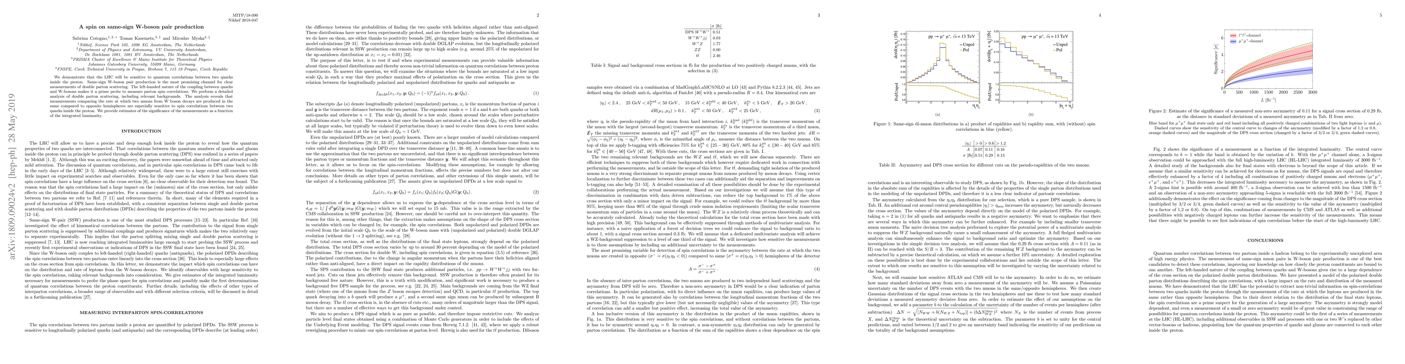 We demonstrate that the LHC will be sensitive to quantum correlations between two quarks inside the proton. Same-sign W-boson pair production is the most promising channel for clear measurements of double parton scattering. The left-handed nature of the coupling between quarks and W-bosons makes it a prime probe to measure parton spin correlations. We perform a detailed analysis of double parton scattering, including relevant backgrounds. The analysis reveals that measurements comparing the rate at which two muons from W boson decays are produced in the same compared to opposite hemispheres are especially sensitive to spin correlations between two quarks inside the proton. We provide estimates of the significance of the measurements as a function of the integrated luminosity.