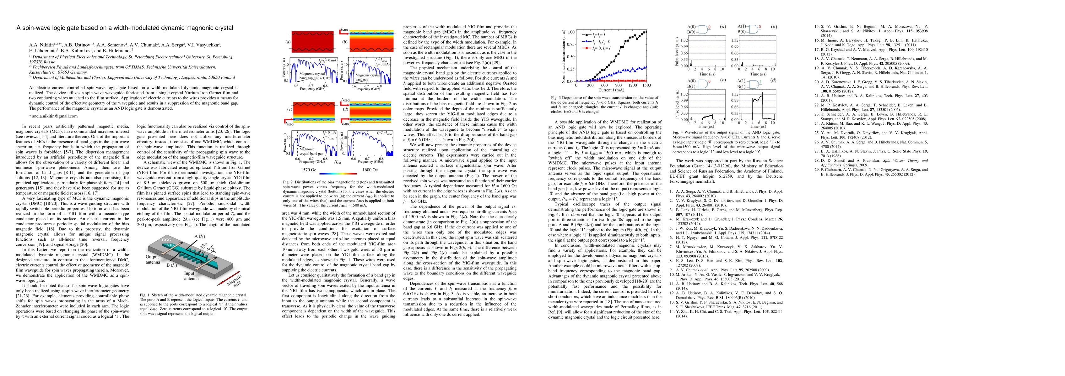This paper presents an electric current controlled spin-wave logic gate using a width-modulated dynamic magnonic crystal. The device manipulates spin waves in a Yttrium Iron Garnet film to function as an AND logic gate by dynamically altering the waveguide geometry.