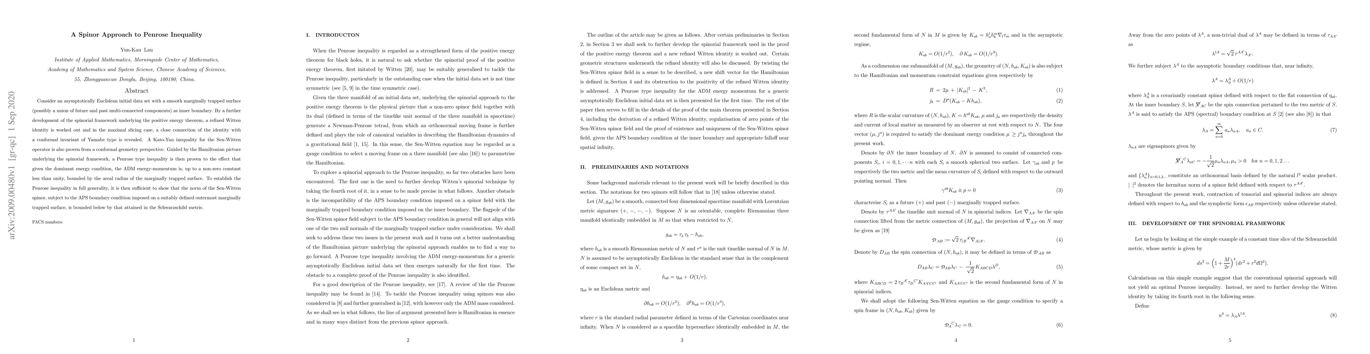 Consider an asymptotically Euclidean initial data set with a smooth marginally trapped surface (possibly a union of future and past multi-connected components) as inner boundary. By a further development of the spinorial framework underlying the positive energy theorem, a refined Witten identity is worked out and in the maximal slicing case, a close connection of the identity with a conformal invariant of Yamabe type is revealed. A Kato-Yau inequality for the Sen-Witten operator is also proven from a conformal geometry perspective. Guided by the Hamiltonian picture underlying the spinorial framework, a Penrose type inequality is then proven to the effect that given the dominant energy condition, the ADM energy-momentum is, up to a non-zero constant less than unity, bounded by the areal radius of the marginally trapped surface. To establish the Penrose inequality in full generality, it is then sufficient to show that the norm of the Sen-Witten spinor, subject to the APS boundary condition imposed on a suitably defined outermost marginally trapped surface, is bounded below by that attained in the Schwarzschild metric.
