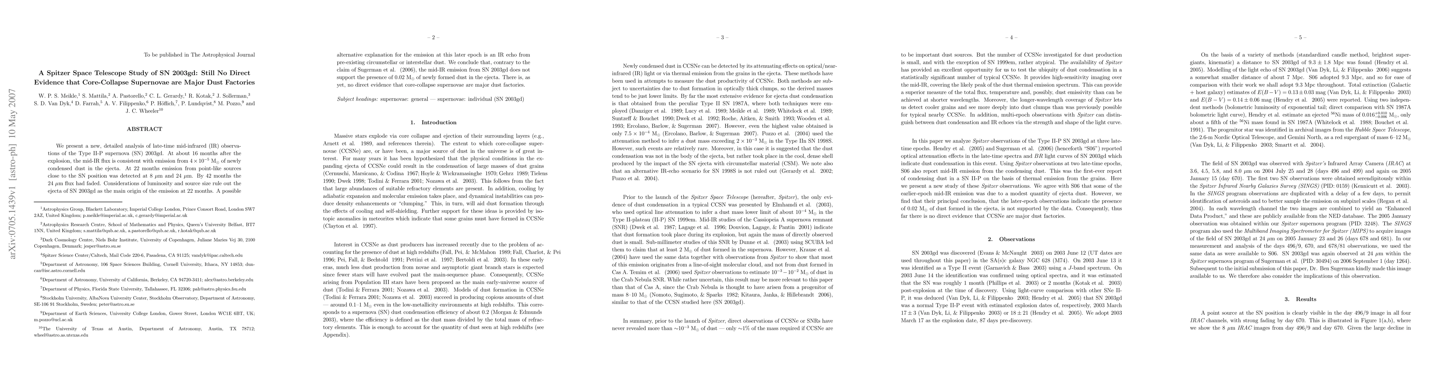 We present a new, detailed analysis of late-time mid-infrared (IR) observations of the Type II-P supernova (SN) 2003gd. At about 16 months after the explosion, the mid-IR flux is consistent with emission from 4 x 10^(-5) M(solar) of newly condensed dust in the ejecta. At 22 months emission from point-like sources close to the SN position was detected at 8 microns and 24 microns. By 42 months the 24 micron flux had faded. Considerations of luminosity and source size rule out the ejecta of SN 2003gd as the main origin of the emission at 22 months. A possible alternative explanation for the emission at this later epoch is an IR echo from pre-existing circumstellar or interstellar dust. We conclude that, contrary to the claim of Sugerman et al. (2006, Science, 313, 196), the mid-IR emission from SN 2003gd does not support the presence of 0.02 M(solar) of newly formed dust in the ejecta. There is, as yet, no direct evidence that core-collapse supernovae are major dust factories.