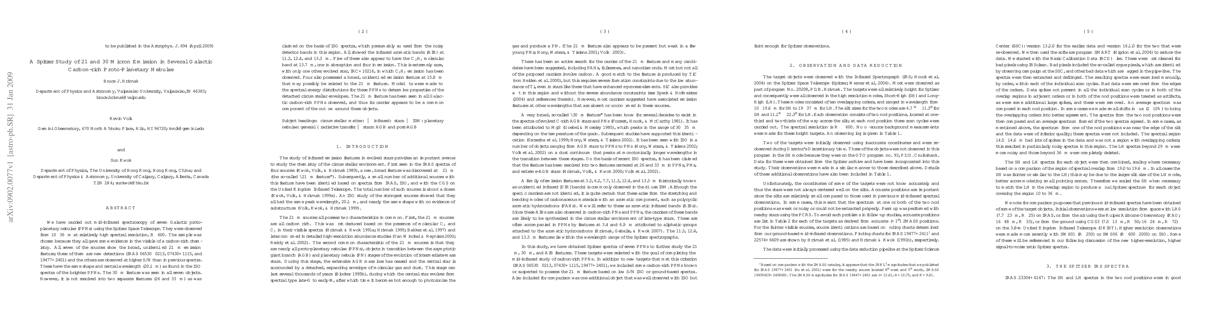This Spitzer study reveals mid-infrared spectroscopy of seven Galactic carbon-rich proto-planetary nebulae, identifying broad, unidentified 21 micron emission features in all, and a 30 micron feature in all seven objects. The study suggests the 21 micron feature's carrier is common in these outflows.