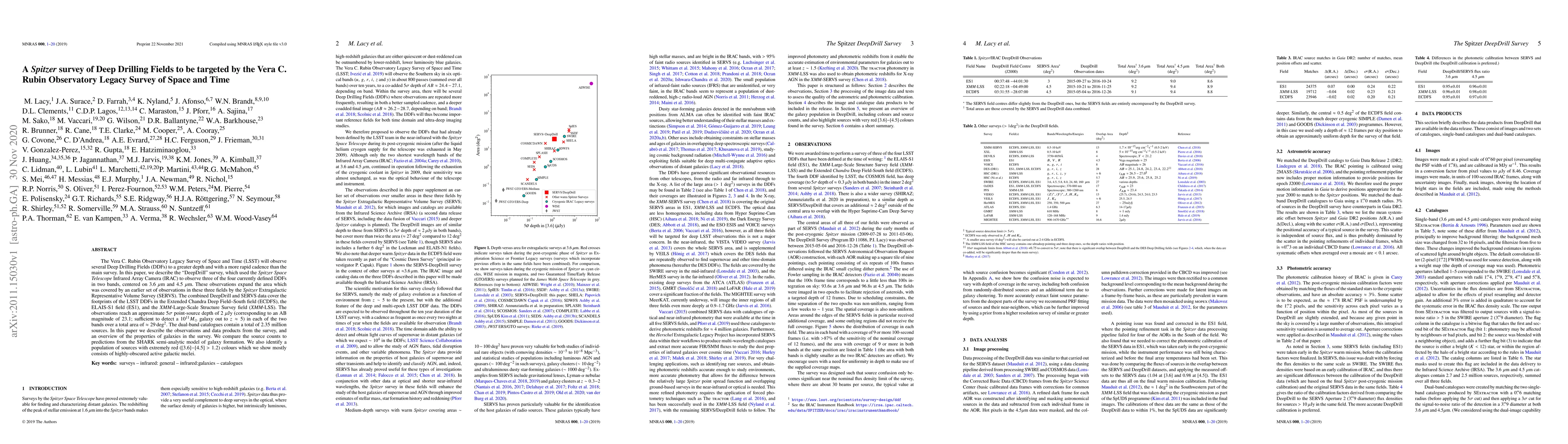 This paper details the "DeepDrill" survey using the Spitzer Space Telescope to observe three Deep Drilling Fields targeted by the Vera C. Rubin Observatory, providing infrared data in two bands. The survey expands previous observations and covers a total area of 29 deg², reaching a depth sufficient to detect galaxies up to a redshift of 5.