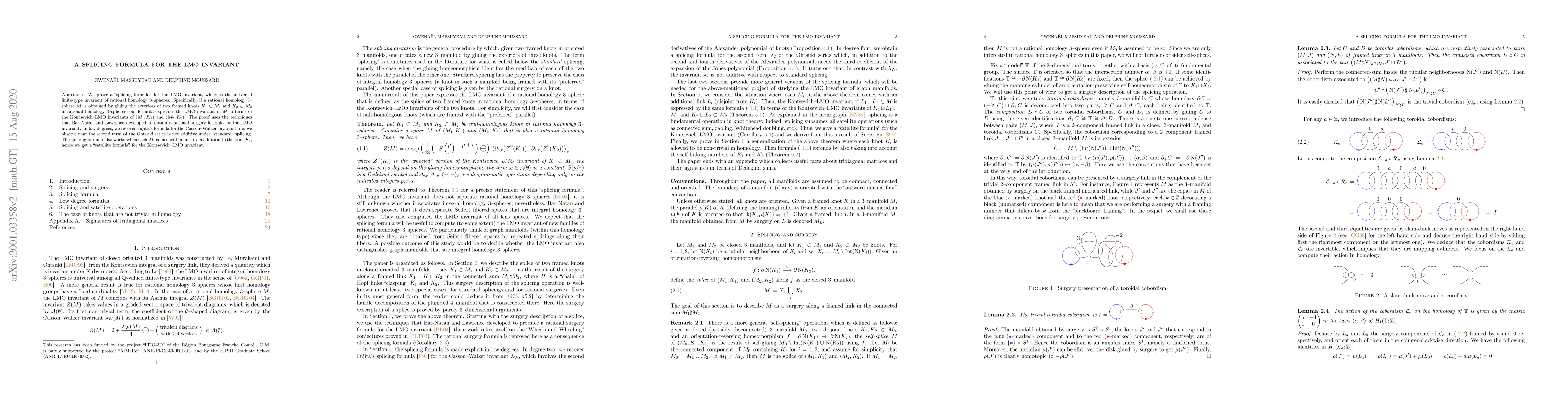 The paper establishes a "splicing formula" for the LMO invariant, connecting the invariant of a $3$-sphere formed by gluing two framed knots to the invariants of the individual components. The formula also extends to cases with additional links, providing a satellite formula for the Kontsevich-LMO invariant.