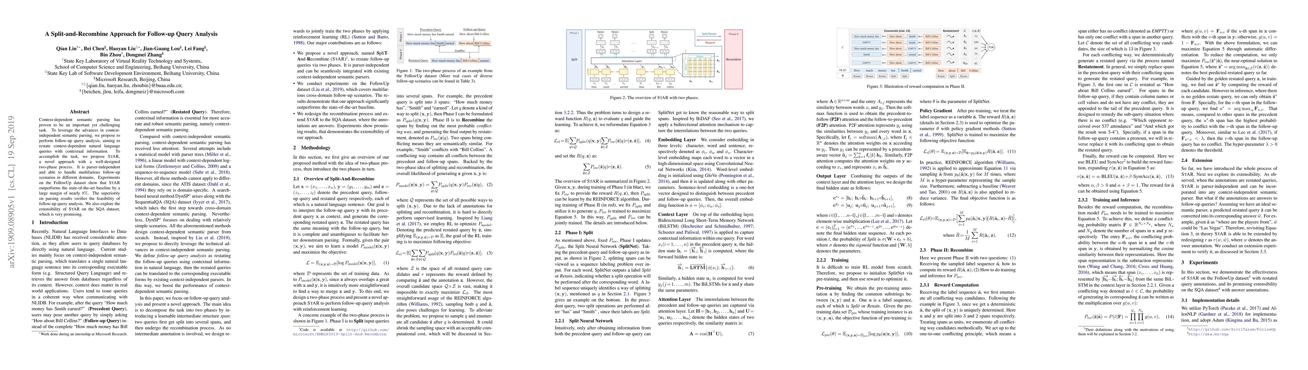 A new approach called STAR improves follow-up query analysis by rephrasing context-dependent natural language queries with contextual information, outperforming the state-of-the-art baseline by 8%.