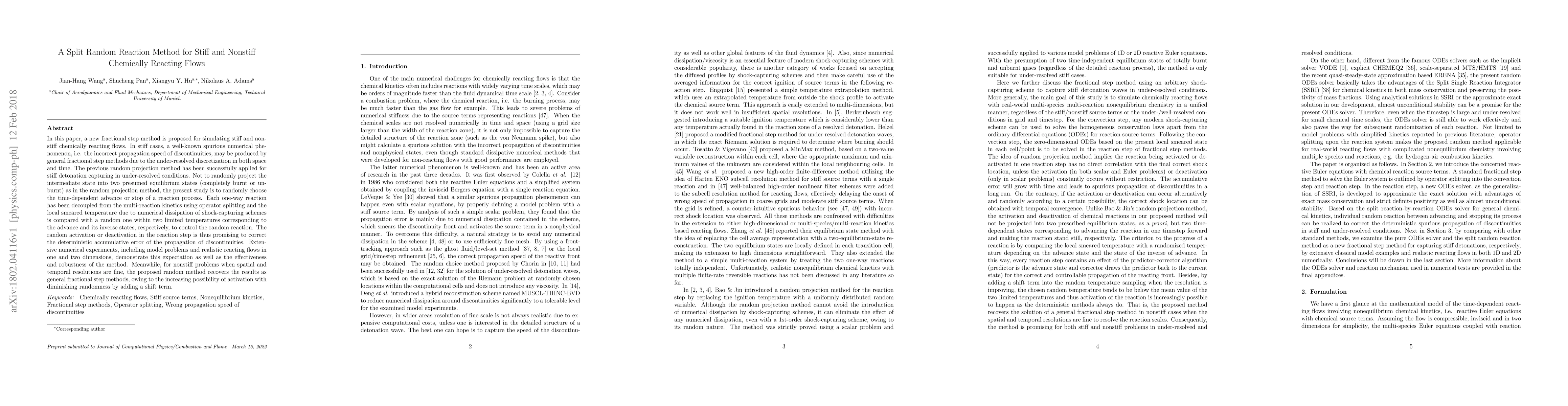 This paper introduces a split random time stepping method to simulate both stiff and nonstiff chemically reacting flows, addressing the issue of incorrect propagation of discontinuities in stiff cases. The method randomly activates or deactivates reaction processes to correct deterministic errors, while for nonstiff cases, it reverts to general fractional step results.