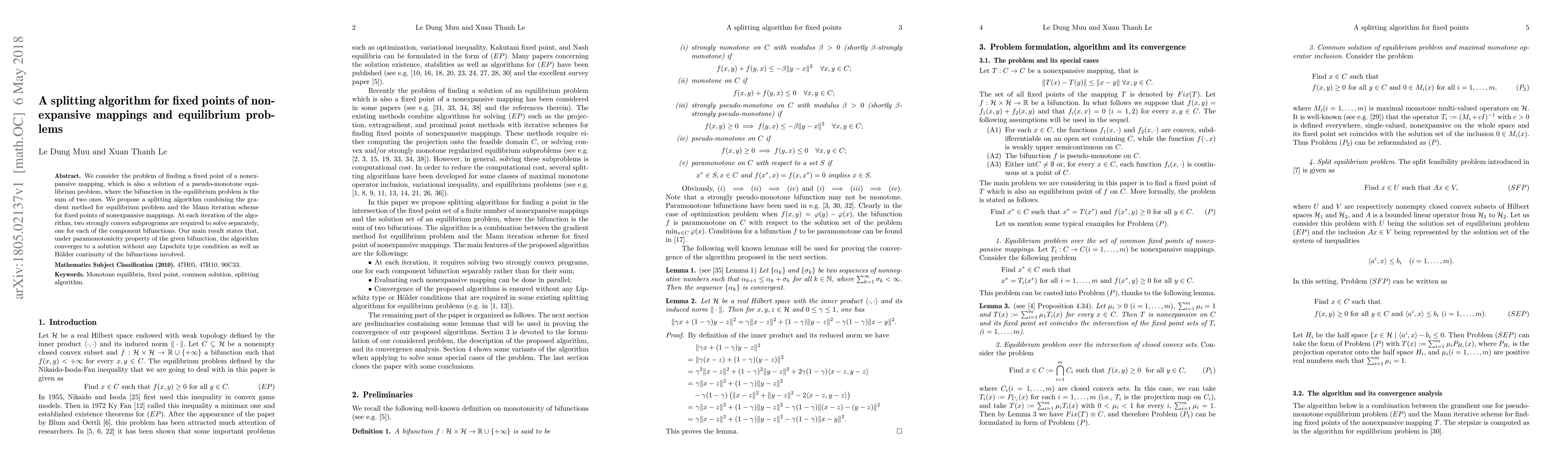 This paper proposes a novel splitting algorithm for finding fixed points of nonexpansive mappings and solving pseudo-monotone equilibrium problems. It combines gradient methods and Mann iteration, ensuring convergence under paramonotonicity without requiring Lipschitz or H\"older continuity.