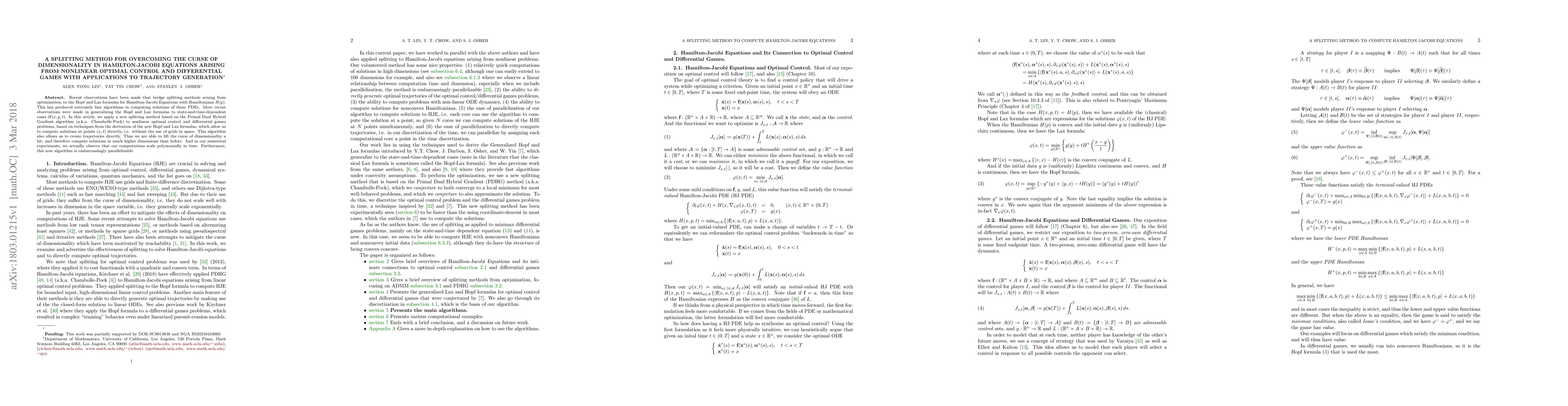 Recent observations have been made that bridge splitting methods arising from optimization, to the Hopf and Lax formulas for Hamilton-Jacobi Equations with Hamiltonians $H(p)$. This has produced extremely fast algorithms in computing solutions of these PDEs. More recent observations were made in generalizing the Hopf and Lax formulas to state-and-time-dependent cases $H(x,p,t)$. In this article, we apply a new splitting method based on the Primal Dual Hybrid Gradient algorithm (a.k.a. Chambolle-Pock) to nonlinear optimal control and differential games problems, based on techniques from the derivation of the new Hopf and Lax formulas, which allow us to compute solutions at points $(x,t)$ directly, i.e. without the use of grids in space. This algorithm also allows us to create trajectories directly. Thus we are able to lift the curse of dimensionality a bit, and therefore compute solutions in much higher dimensions than before. And in our numerical experiments, we actually observe that our computations scale polynomially in time. Furthermore, this new algorithm is embarrassingly parallelizable.