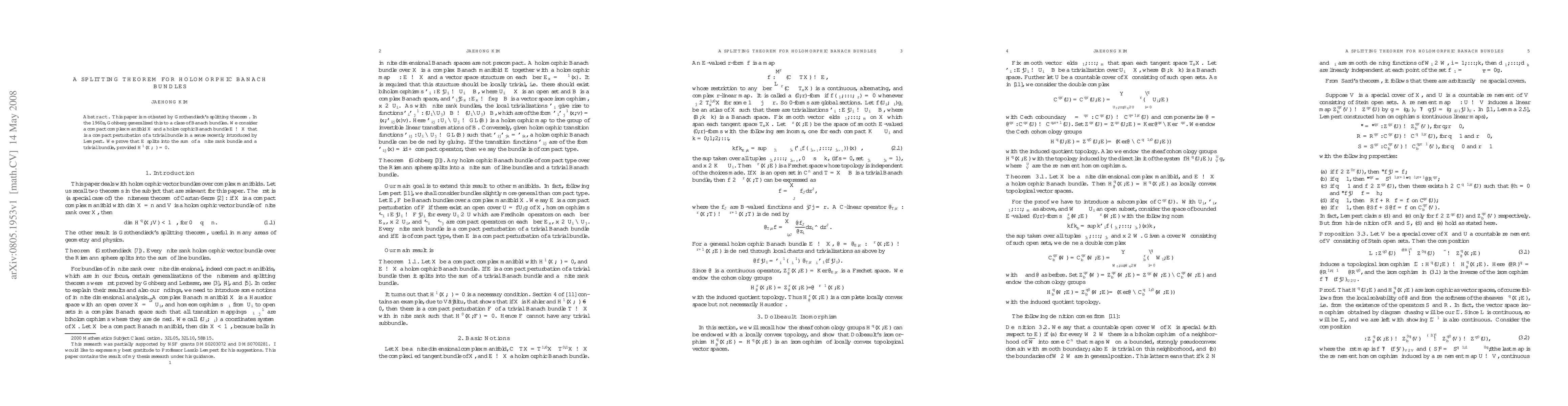 A research paper proves a splitting theorem for holomorphic Banach bundles on compact complex manifolds, assuming certain conditions on the manifold's cohomology.