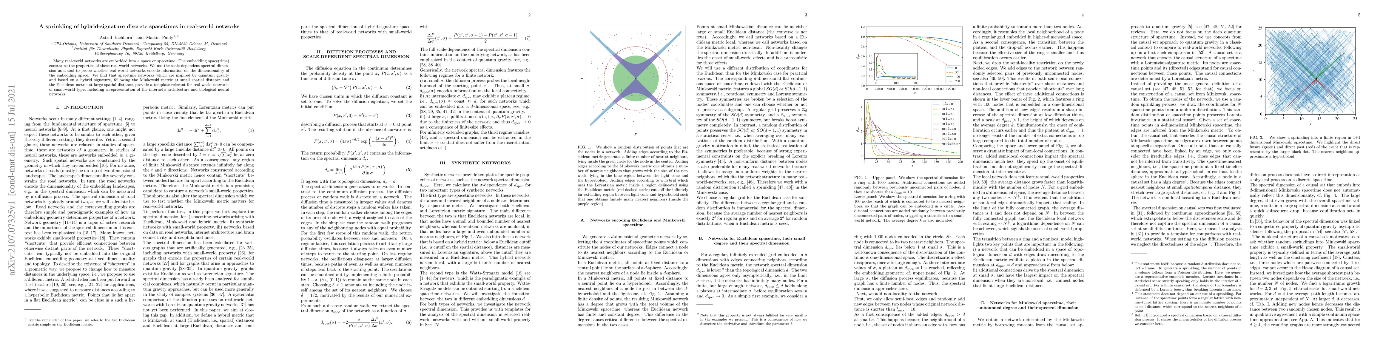 Many real-world networks are embedded into a space or spacetime. The embedding space(time) constrains the properties of these real-world networks. We use the scale-dependent spectral dimension as a tool to probe whether real-world networks encode information on the dimensionality of the embedding space. We find that spacetime networks which are inspired by quantum gravity and based on a hybrid signature, following the Minkowski metric at small spatial distance and the Euclidean metric at large spatial distance, provide a template relevant for real-world networks of small-world type, including a representation of the internet's architecture and biological neural networks.
