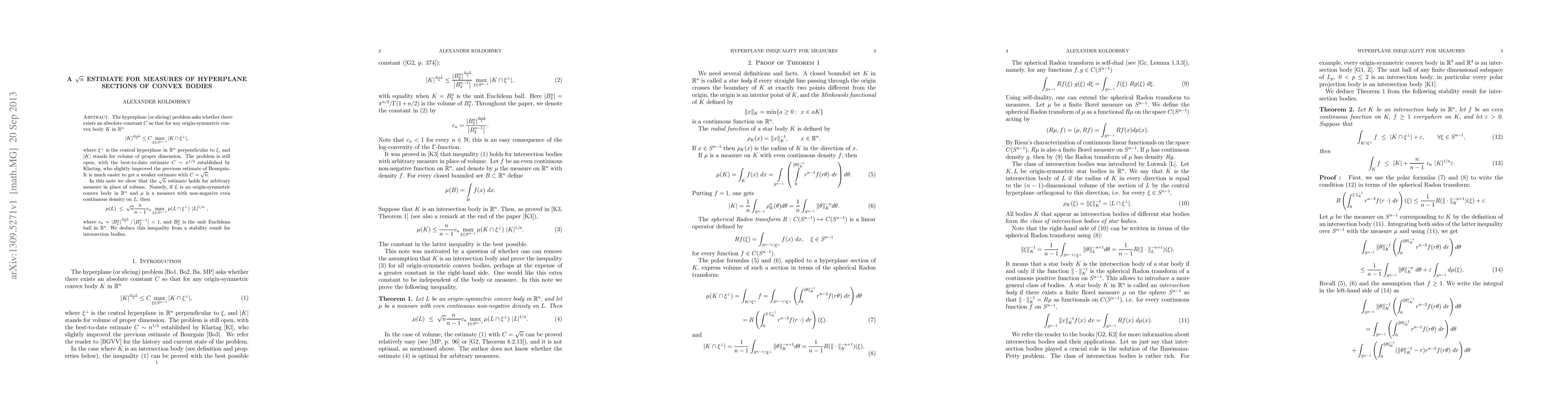 Researchers developed a method to estimate the measure of sections of convex bodies with an accuracy proportional to the square root of n, based on a stability result for intersection bodies.